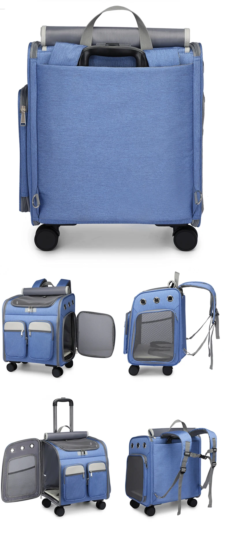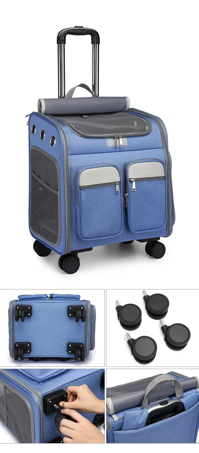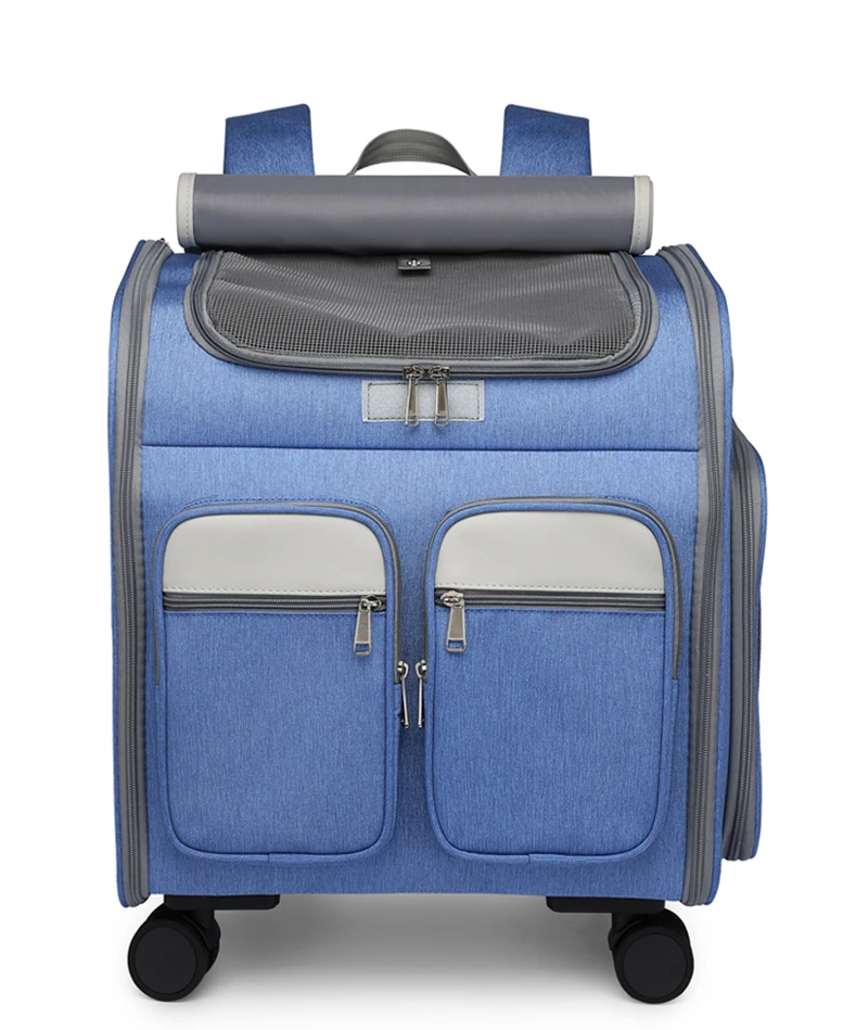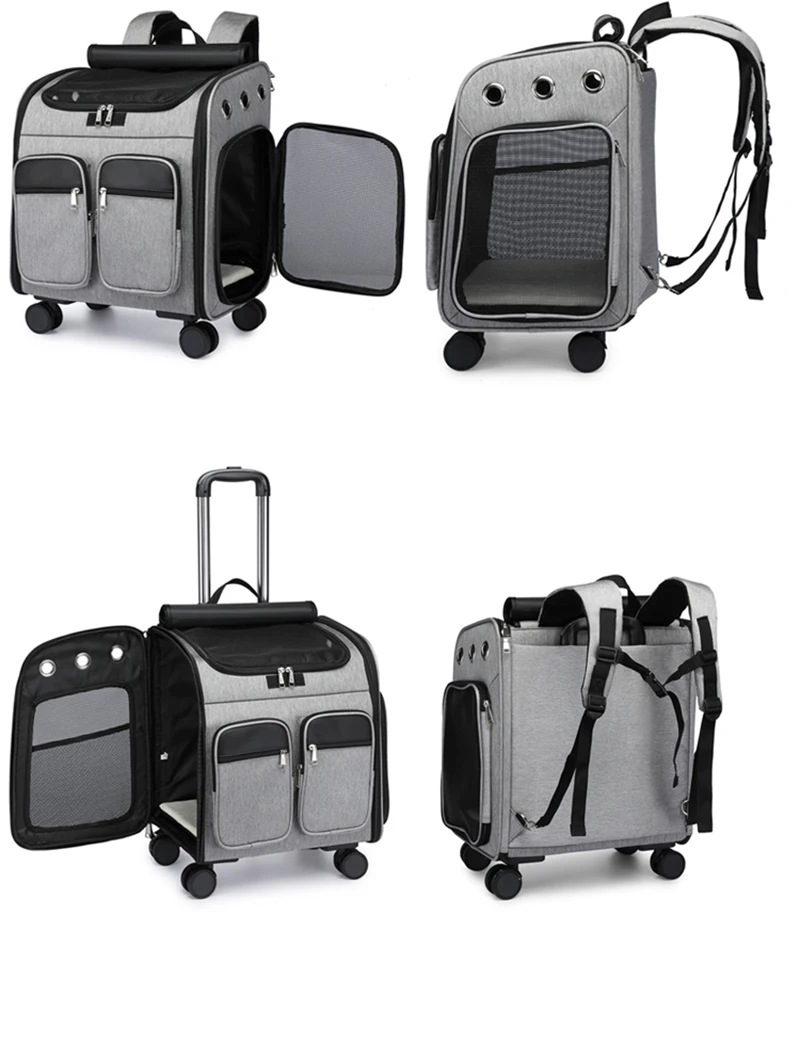 Mochila con ruedas para mascotas Portador de gatos grande con ruedas Bolsa plegable para mascotas con barra de amarre