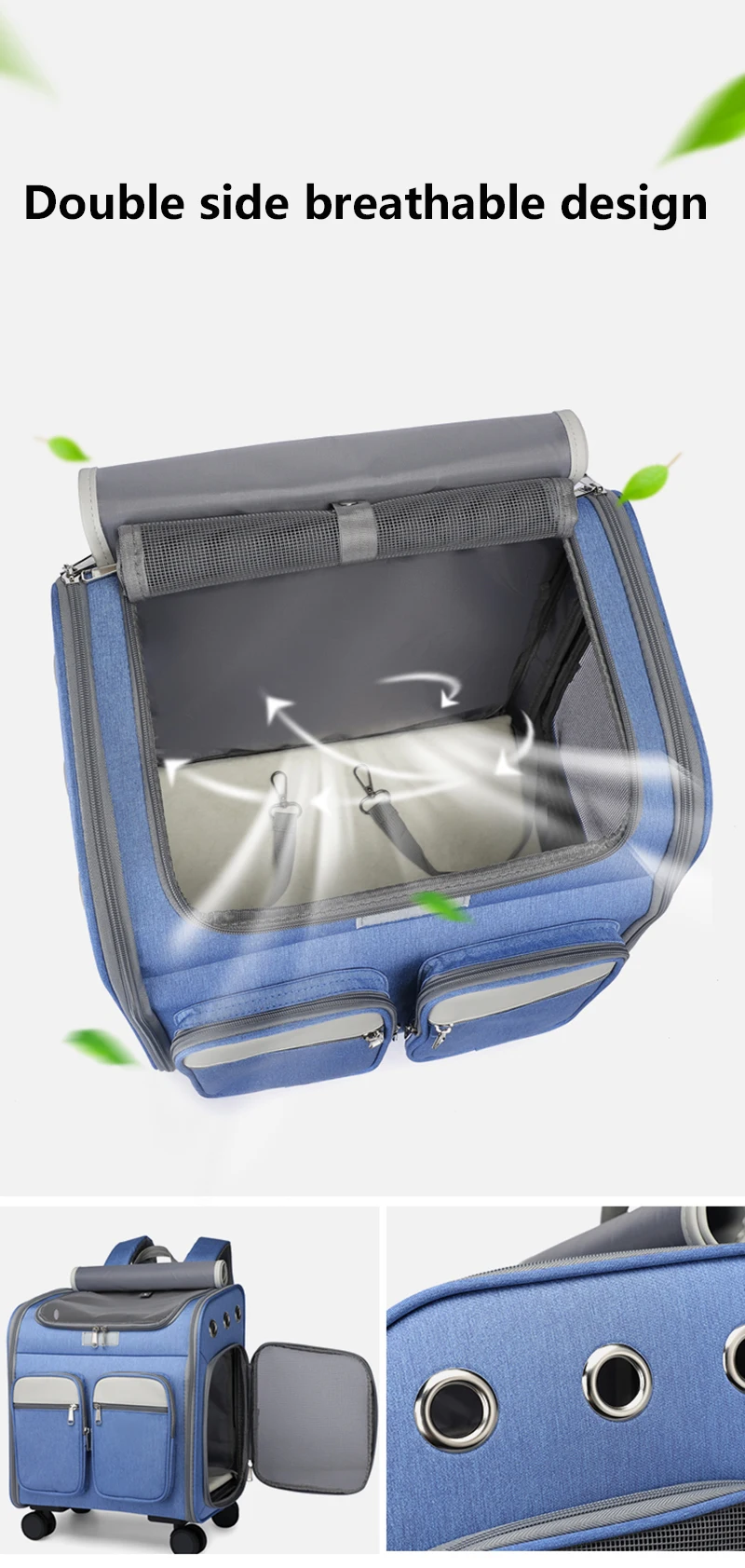 3. Más salidas de aire, acceso bidireccional para facilitar la entrada, ventana de malla superior para más aire y visibilidad.