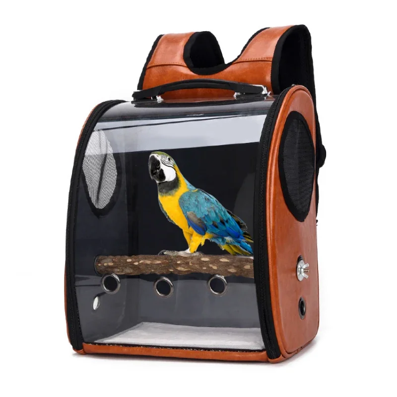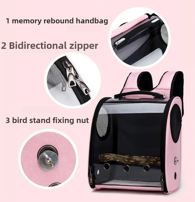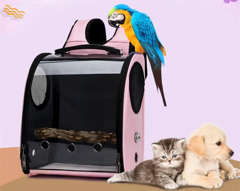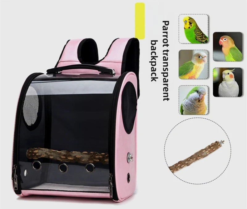 Mochila para loros de viaje al aire libre con percha, mochila portátil para loros, jaula, bolsa transportadora transparente para loros, bolso, suministros para pájaros