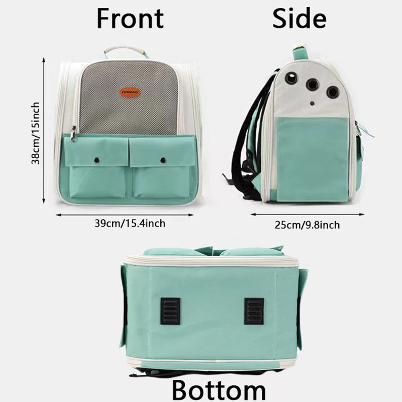 4. Espacio grande (el tamaño es: 39 cm x 25 cm x 38 cm/15,4 "x 9,8" x 15 "), mochila para mascotas para brindar el espacio más cómodo para su mascota.