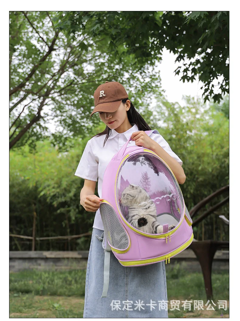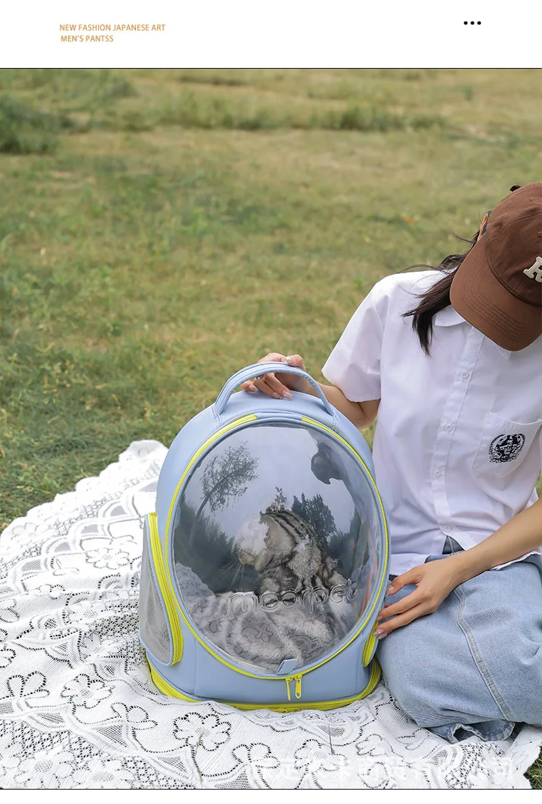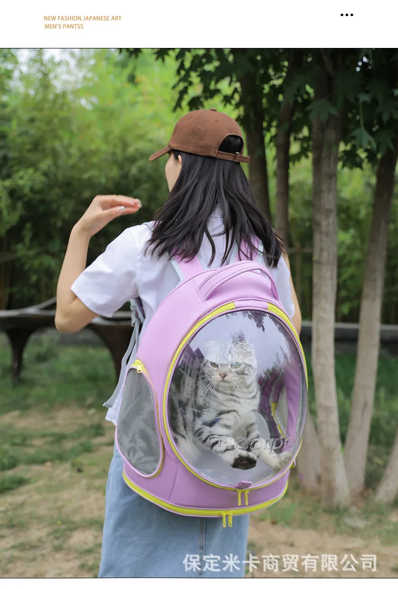 Mochila panorámica grande transparente portátil transpirable para gatos, mochila de viaje para mascotas, mochila para gatos, cápsula espacial transparente