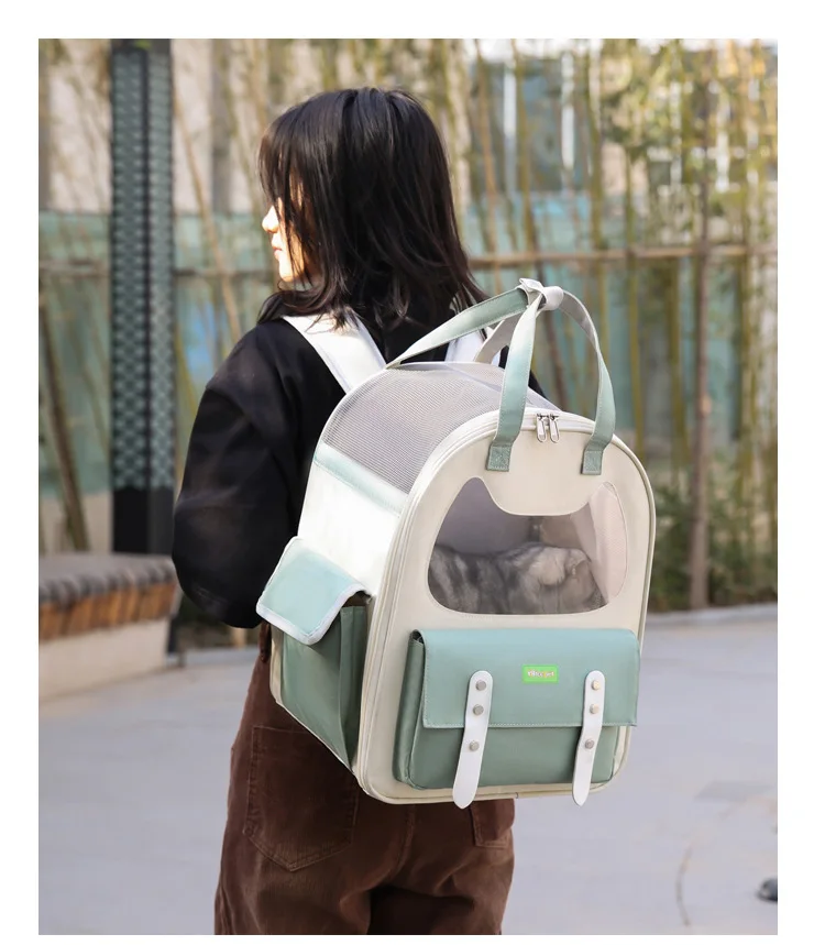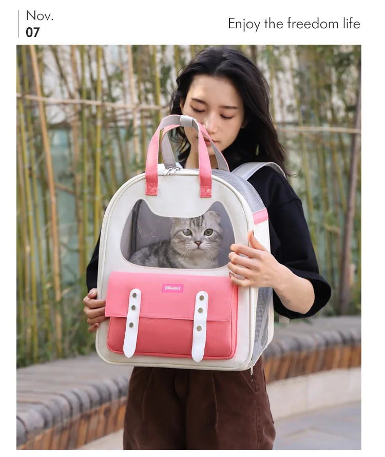 Mochila portátil para gato, bolso de hombro de malla transpirable, bolso de viaje al aire libre con cremallera de alta calidad