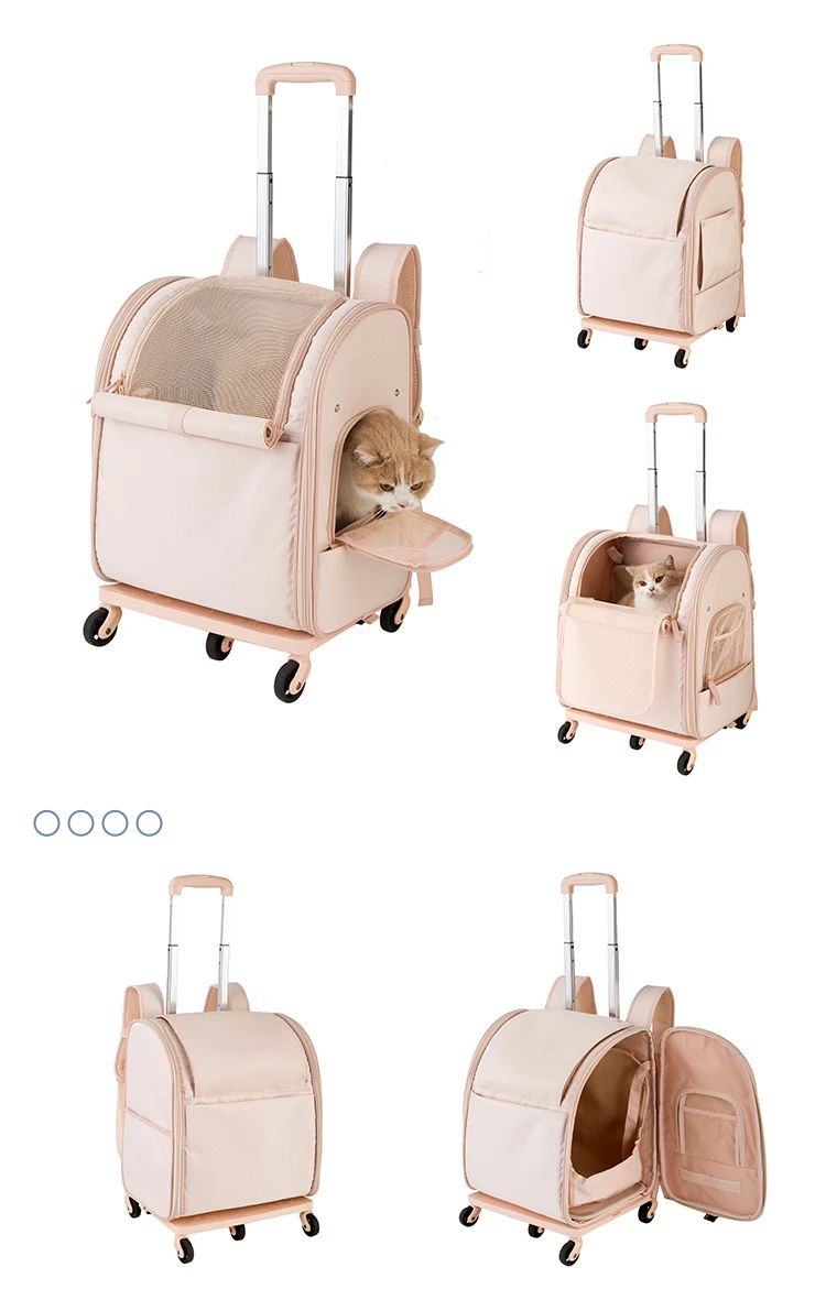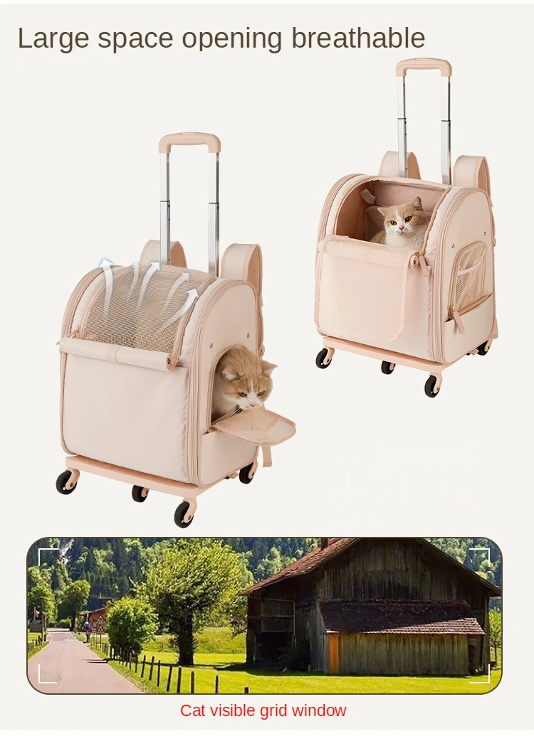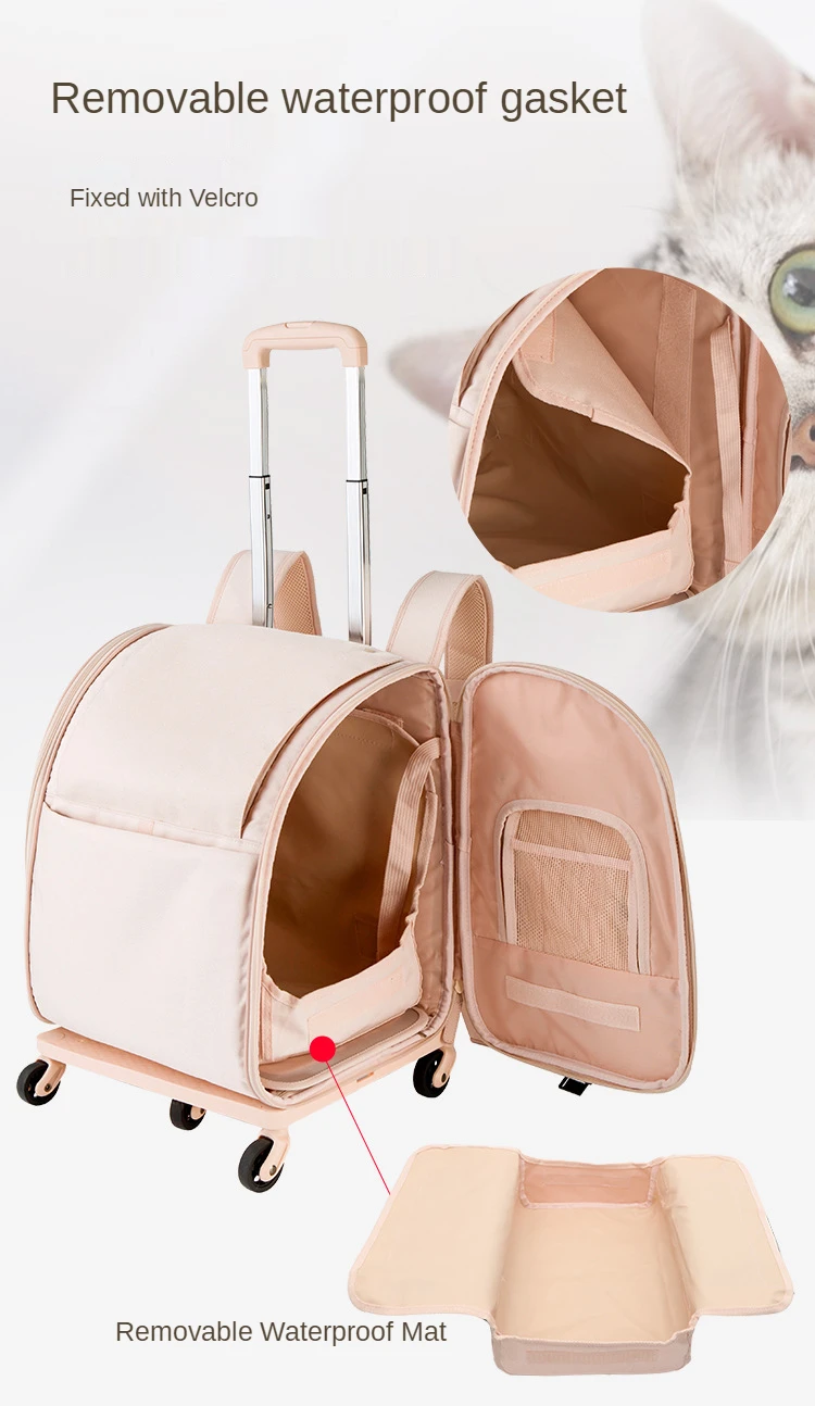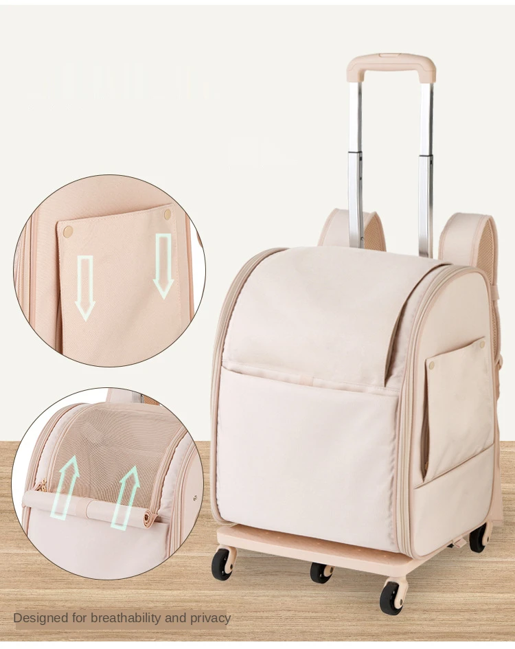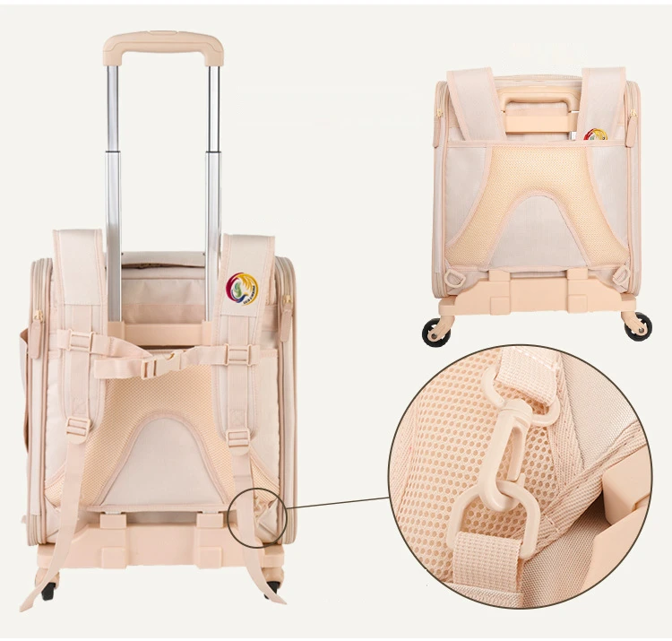 Con un carro incorporado, esta mochila se convierte en un transportador con ruedas, lo que facilita el transporte de su mascota a través de aeropuertos o estaciones de tren.