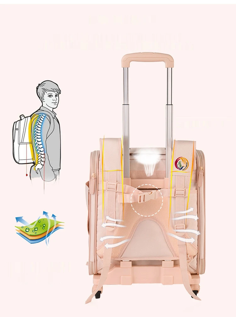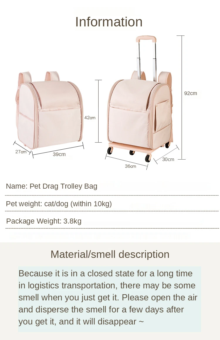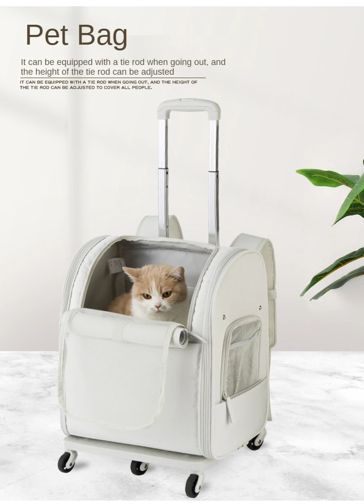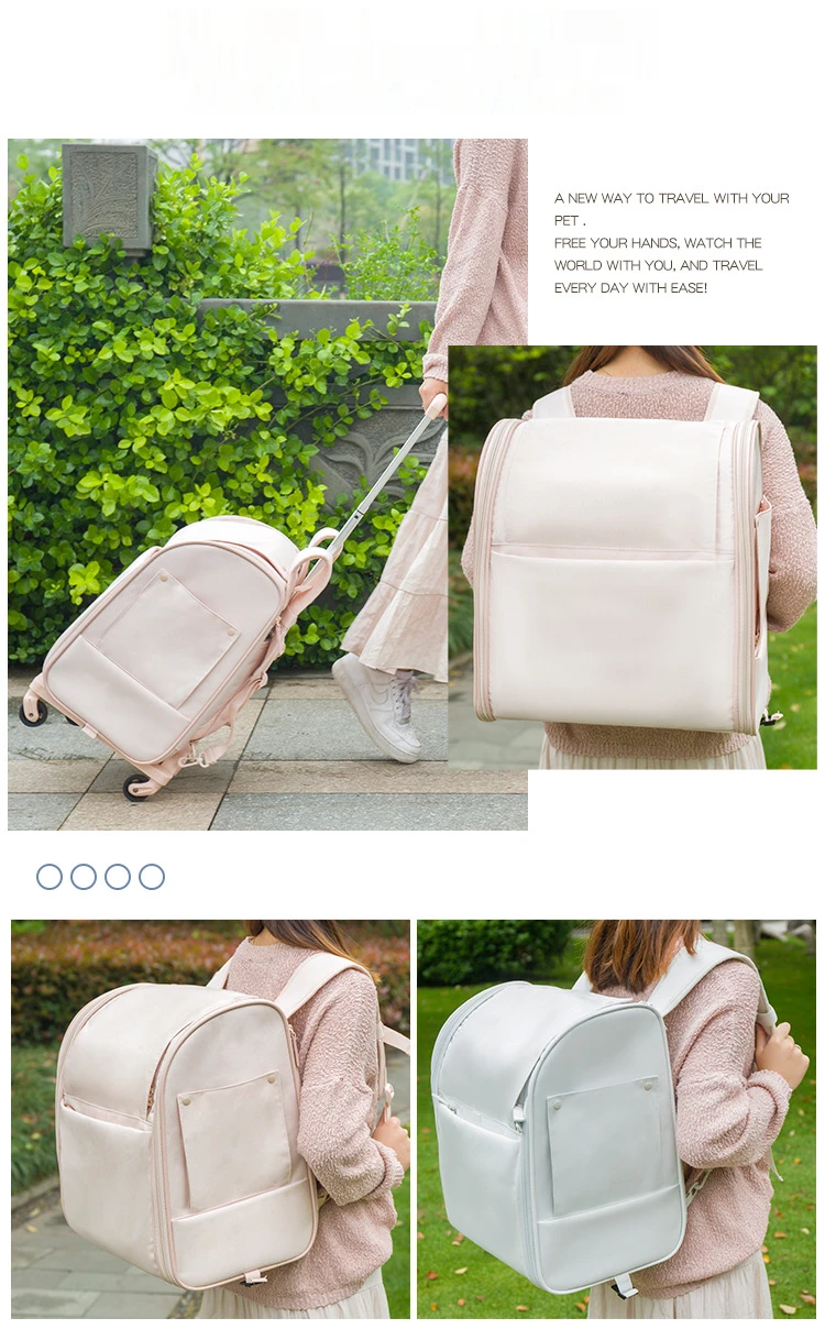 Con un carro incorporado, esta mochila se convierte en un transportador con ruedas, lo que facilita el transporte de su mascota a través de aeropuertos o estaciones de tren.
