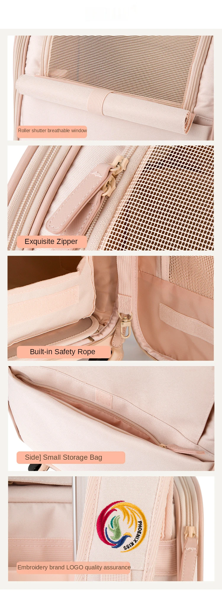Equipada con un tipo de cierre de cremallera seguro, la mochila brinda seguridad y tranquilidad a su mascota durante el tránsito.