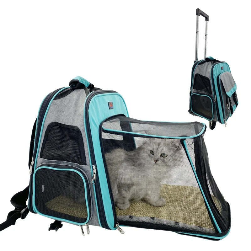 Mochila con ruedas para mascotas de menos de 20 libras con ruedas extraíbles, portador grande con ruedas de lado suave, aprobado por aerolínea para perros pequeños y