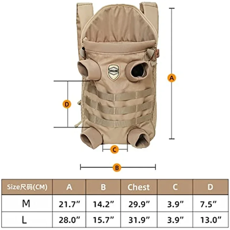 Guía de tallas: Talla M Busto: 29,9 pulgadas Tamaño de la bolsa: Ancho 14,2 pulgadas * Alto 21,7 pulgadas Si su mascota está en el rango de peso donde se cruzan los dos tamaños, le recomendamos que elija el transportador para mascotas de mayor tamaño.