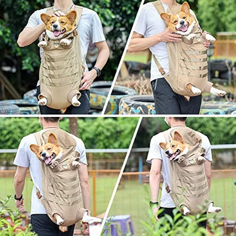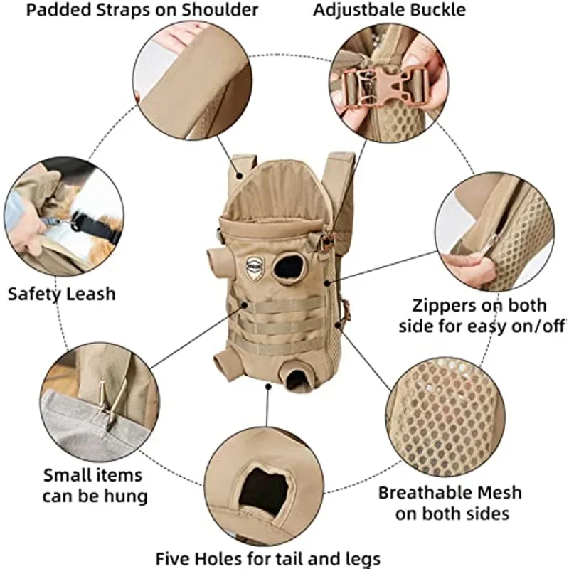 Seguro y multifuncional: bien equipado con una correa de seguridad para evitar que las mascotas se escapen y mantenerlas seguras. Nuestro portabro delantero para perros viene con un resistente anillo en D de acero inoxidable, puede colgar accesorios de entrenamiento. Es un producto maravilloso.