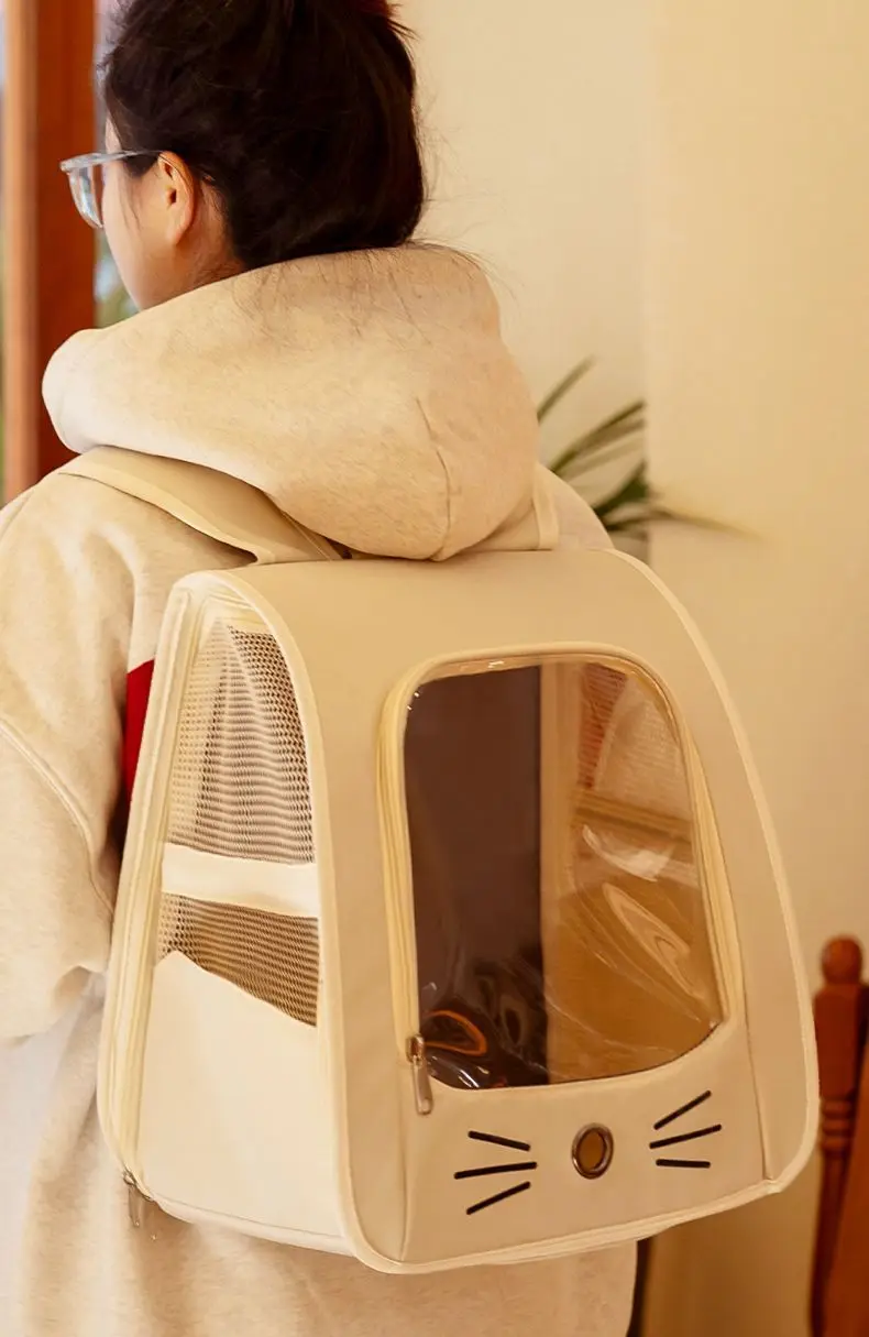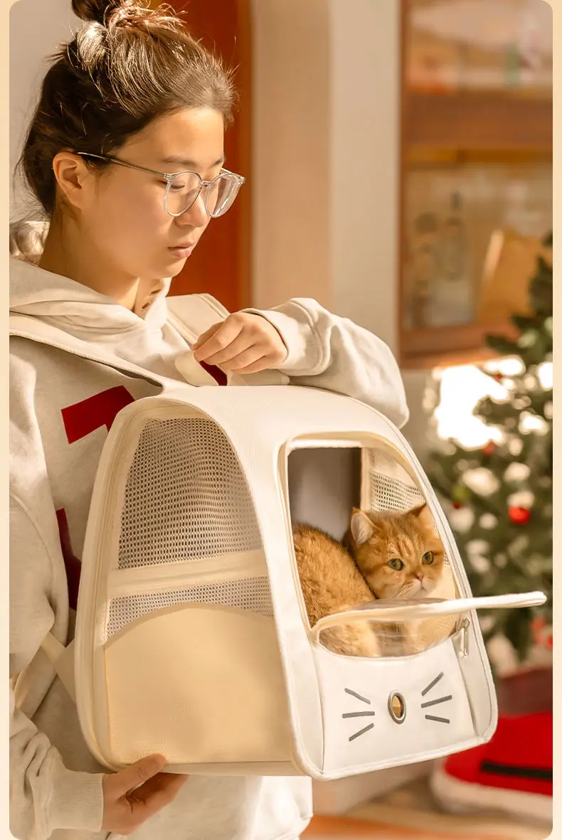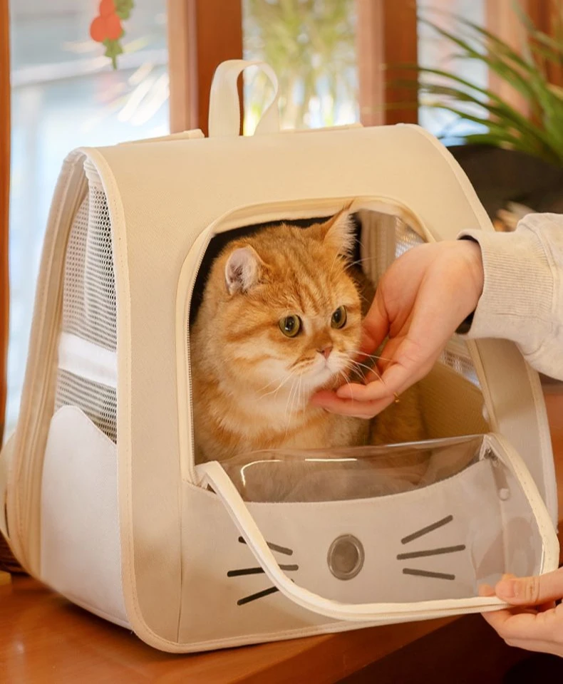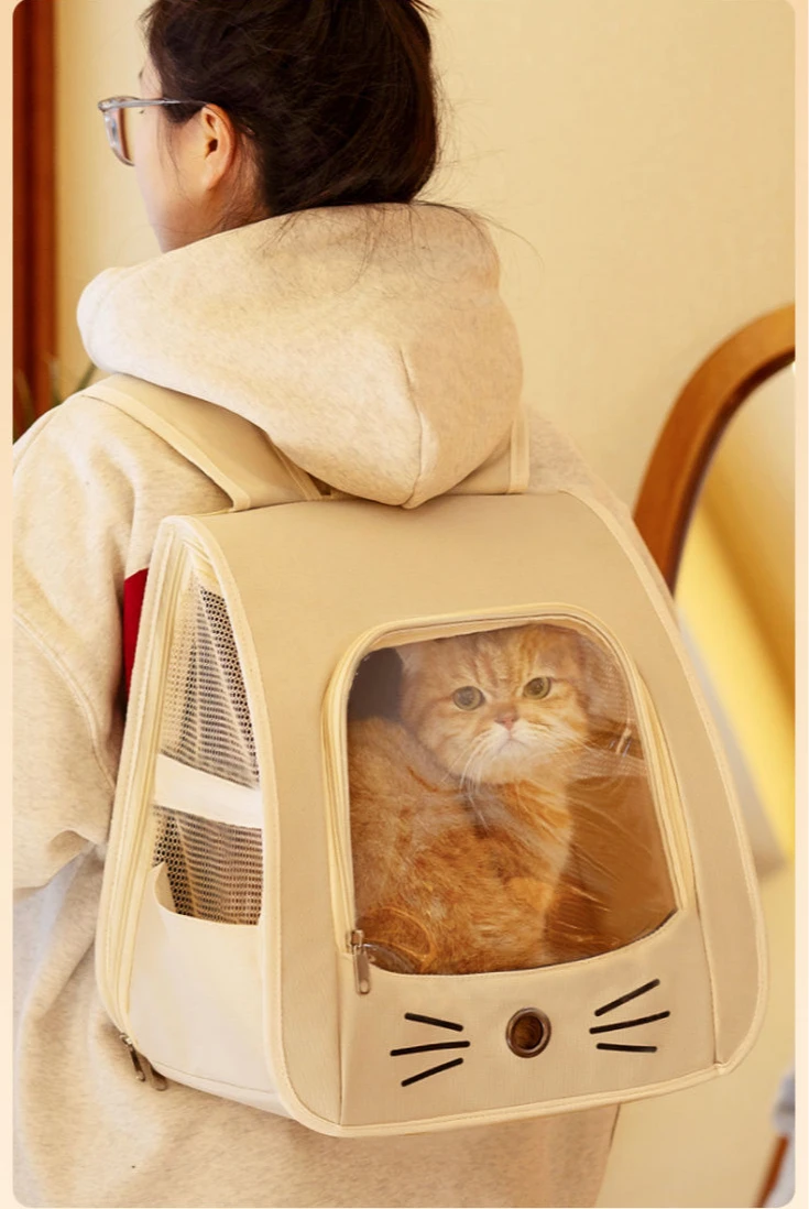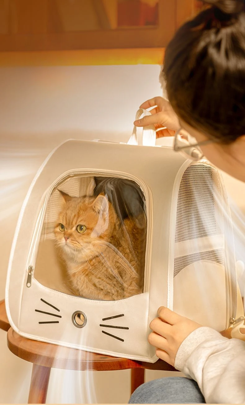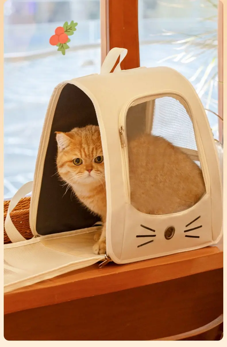 Mochila transportadora de gatos de viaje al aire libre, bolso de hombro portátil transpirable para cachorros y gatitos, suministros de transporte para mascotas con cremallera para perros pequeños