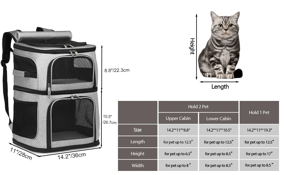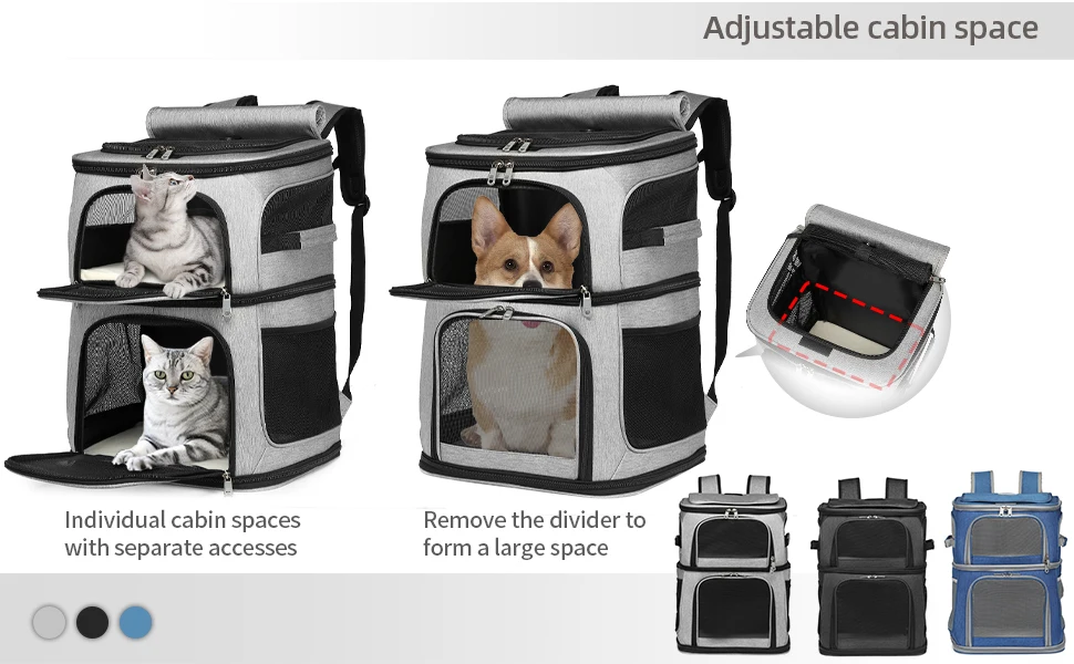 El diseño de doble capa puede contener dos mascotas pequeñas o adaptarse a una mascota de tamaño pequeño a mediano quitando el divisor, realizando el cambio libre de doble capa y de una sola capa en unos segundos.