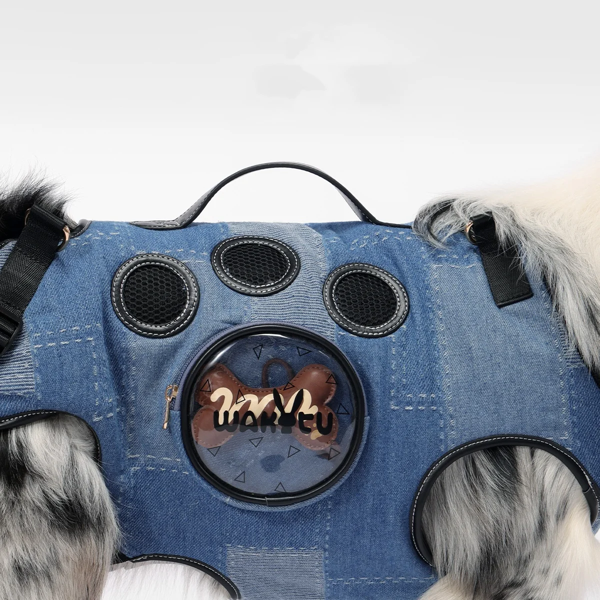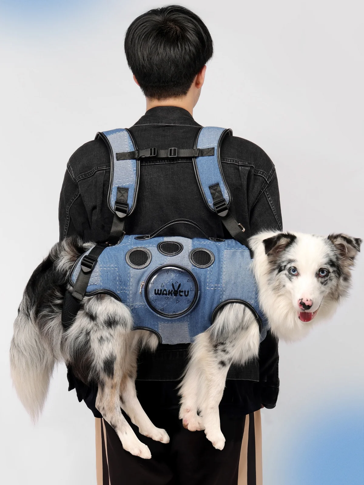 Mochila transportadora de mascotas de mezclilla, eslinga de transporte para perros, bolsa transportadora de levantador de mascotas de cuerpo completo, arnés de soporte de elevación, arnés de elevación para mascotas, mochila para mascotas