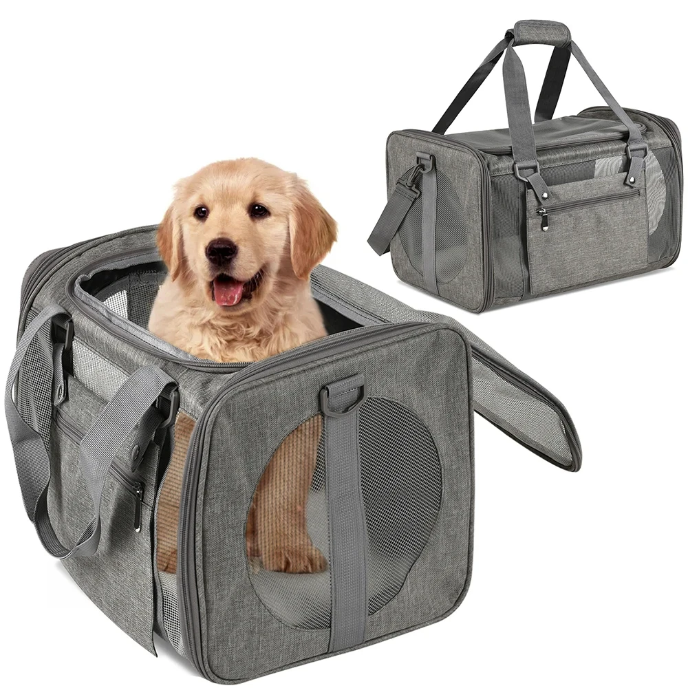 Bolsa portátil para perros y gatos, mochila lateral suave, transportadores para mascotas, bolsas de viaje para perros, diseño de malla transpirable, bolso para mascotas salientes