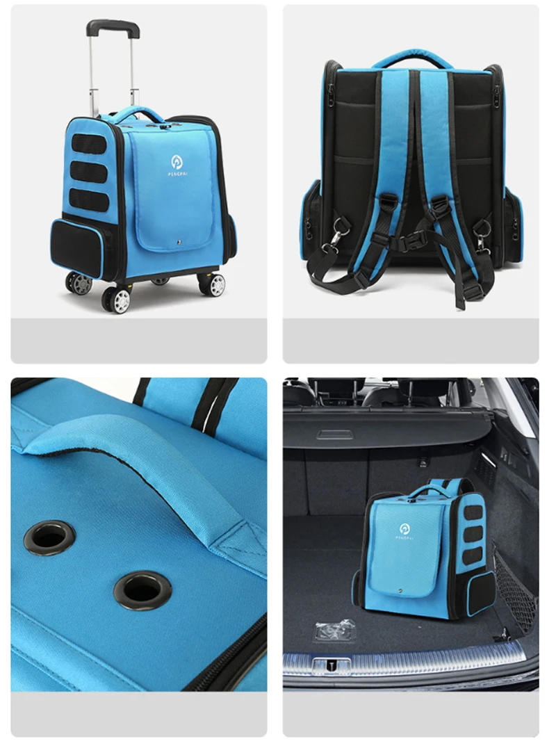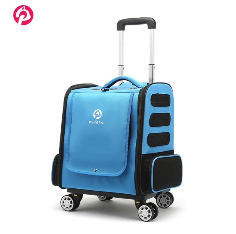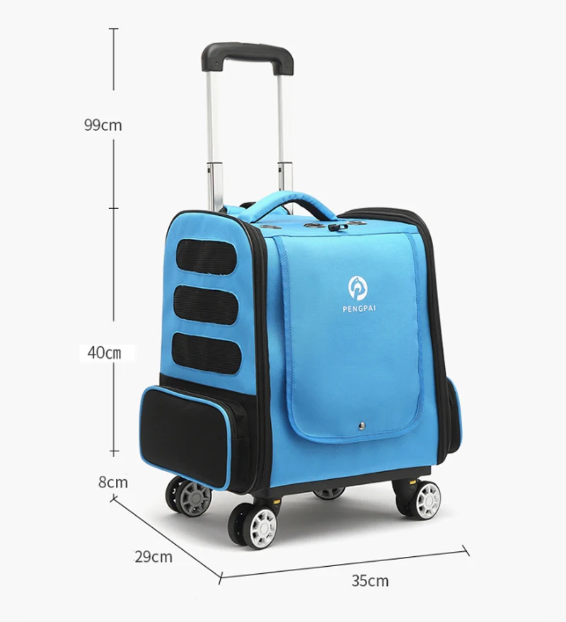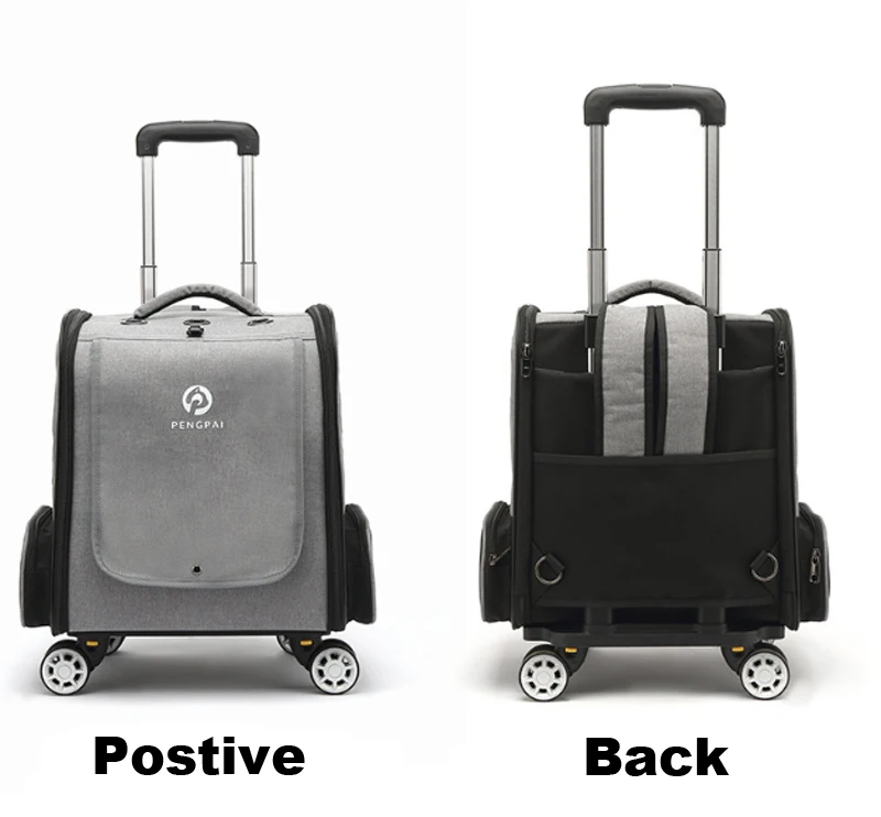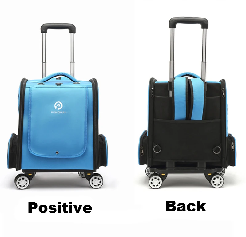 Mochila de transporte con ruedas para mascotas, bolso de viaje cómodo y transpirable, dos en uno, extraíble, para gato y perro