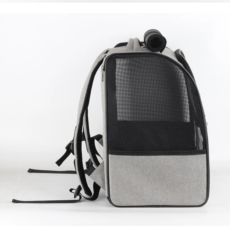 4. Diseño humanizado: esta mochila para mascotas viene con una correa para el pecho para ayudar a distribuir y equilibrar el peso de la mascota.Además, una correa incorporada evita que tu travieso amigo se escape.