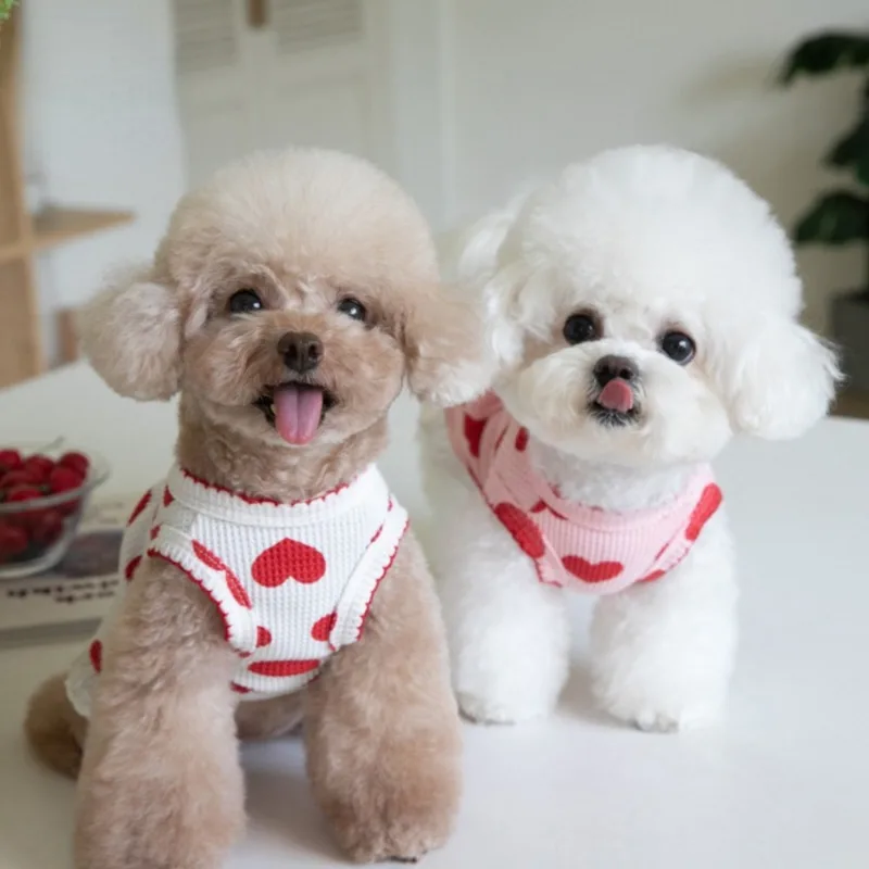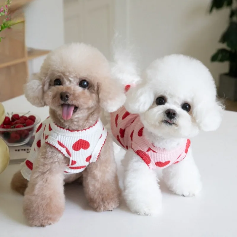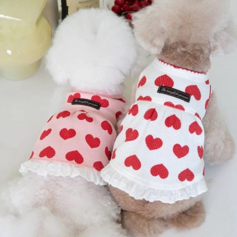 Moda invierno amor Waffle camiseta sin mangas falda vestido para perros ropa para perros en casa Teddy Bichons ropa para cachorros lindos vestidos para perros pequeños