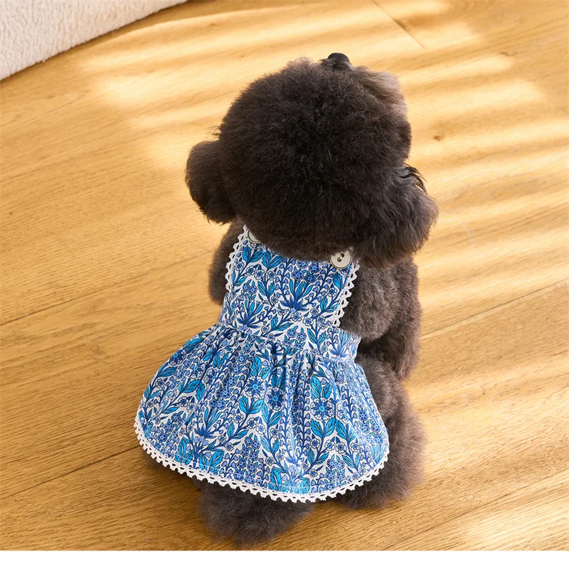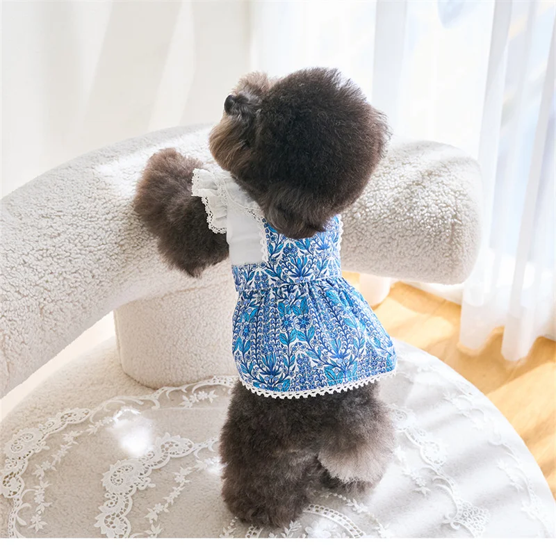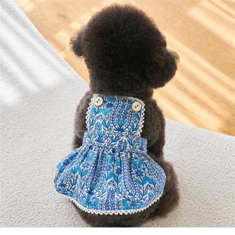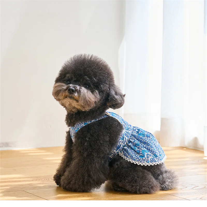 Moda Primavera/Verano mascota perro perro gato porcelana azul y blanca falda estampada ropa Teddy Bigbear suministros para mascotas ropa