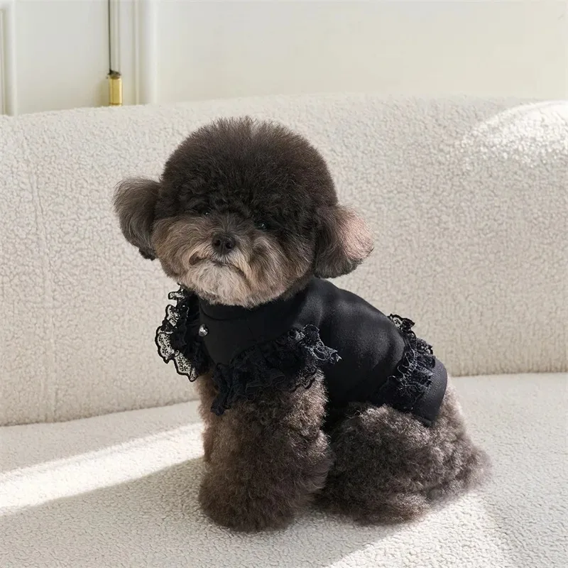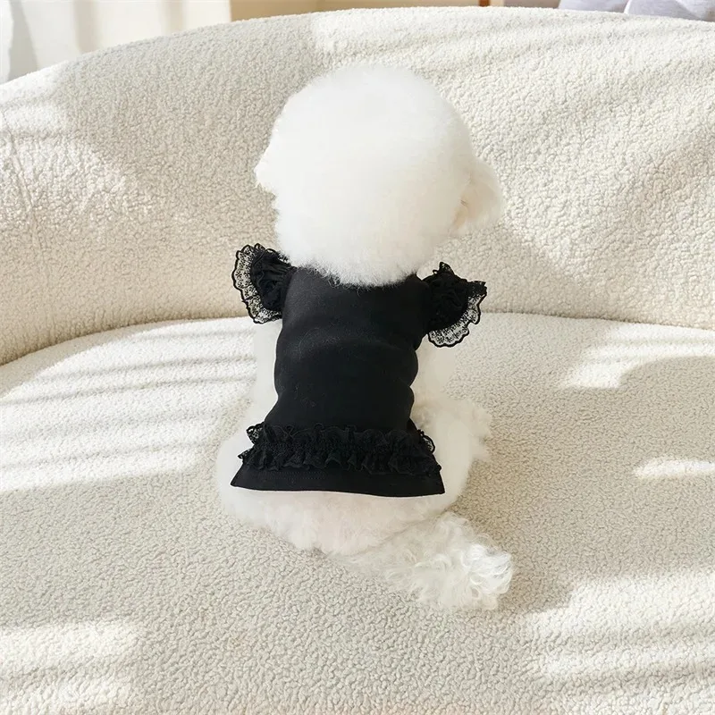 Moda verano encaje manga voladora chaleco para mascotas camisa Base para mascotas camisa Base de oso de peluche camiseta para gato Top ropa para cachorros chaleco de peluche
