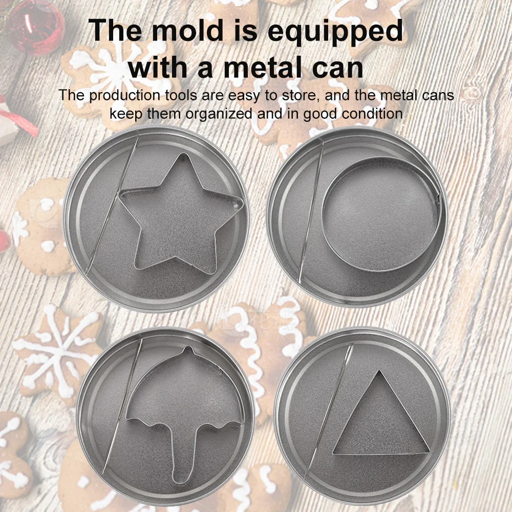 3.Las herramientas de producción son fáciles de almacenar porque cada molde viene con una lata de metal, manteniéndolas organizadas y en buenas condiciones.