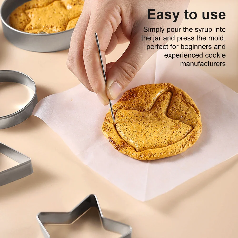 2.El molde es fácil de usar y muy adecuado para principiantes y fabricantes de galletas experimentados.Simplemente vierta el almíbar en el frasco y presiona el molde.