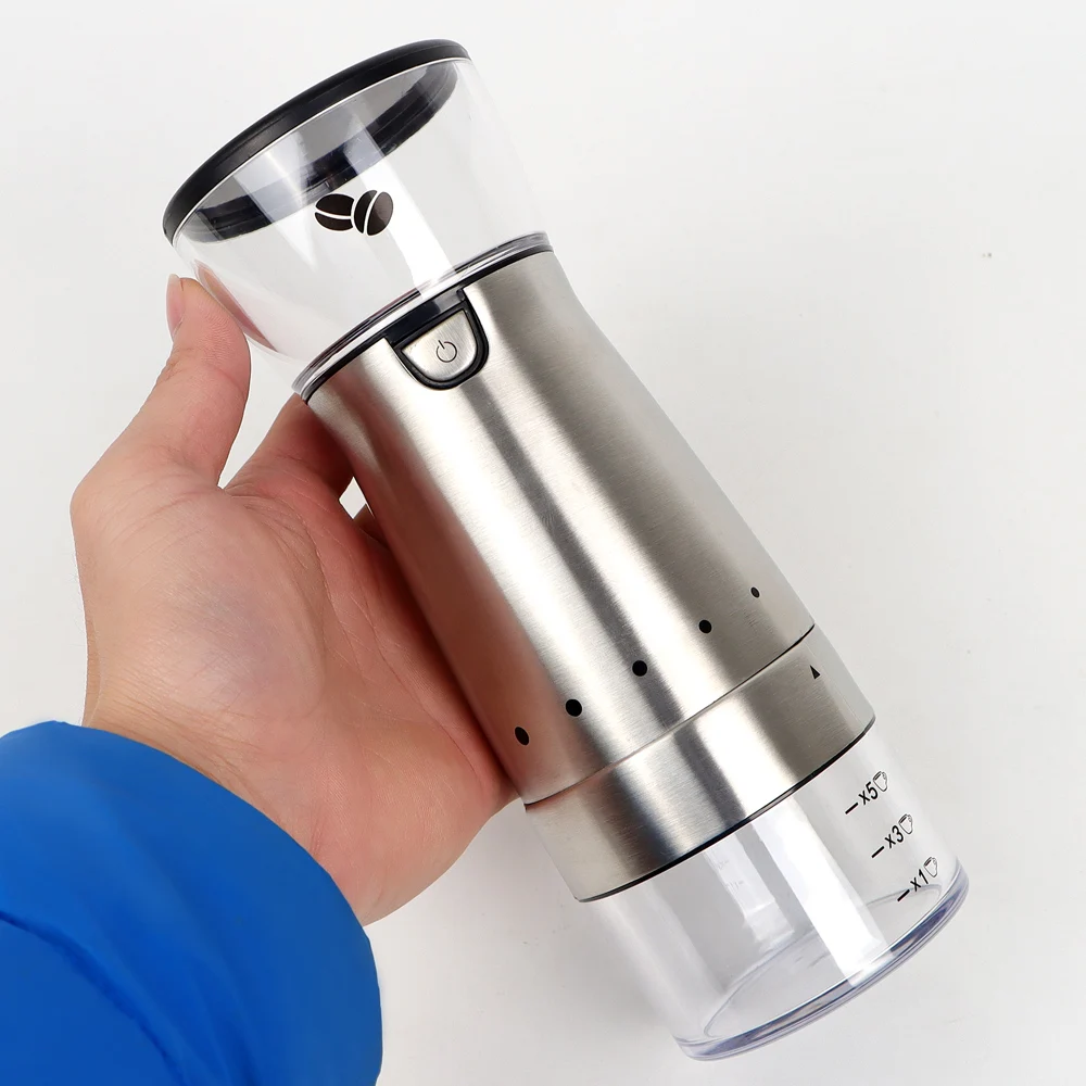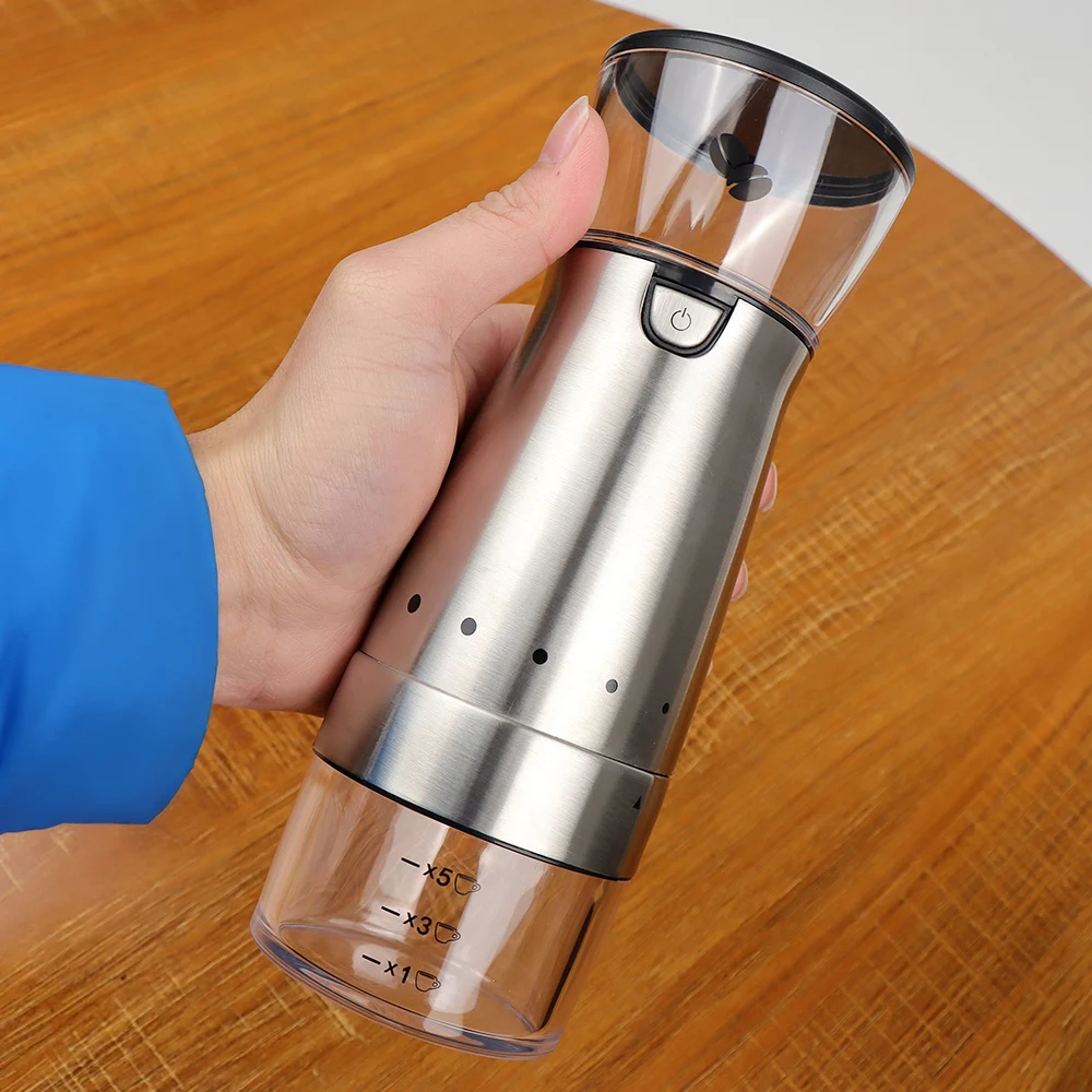 Molinillo de café eléctrico de acero inoxidable, molinillo de café Manual ajustable, accesorios de cocina recargables por USB
