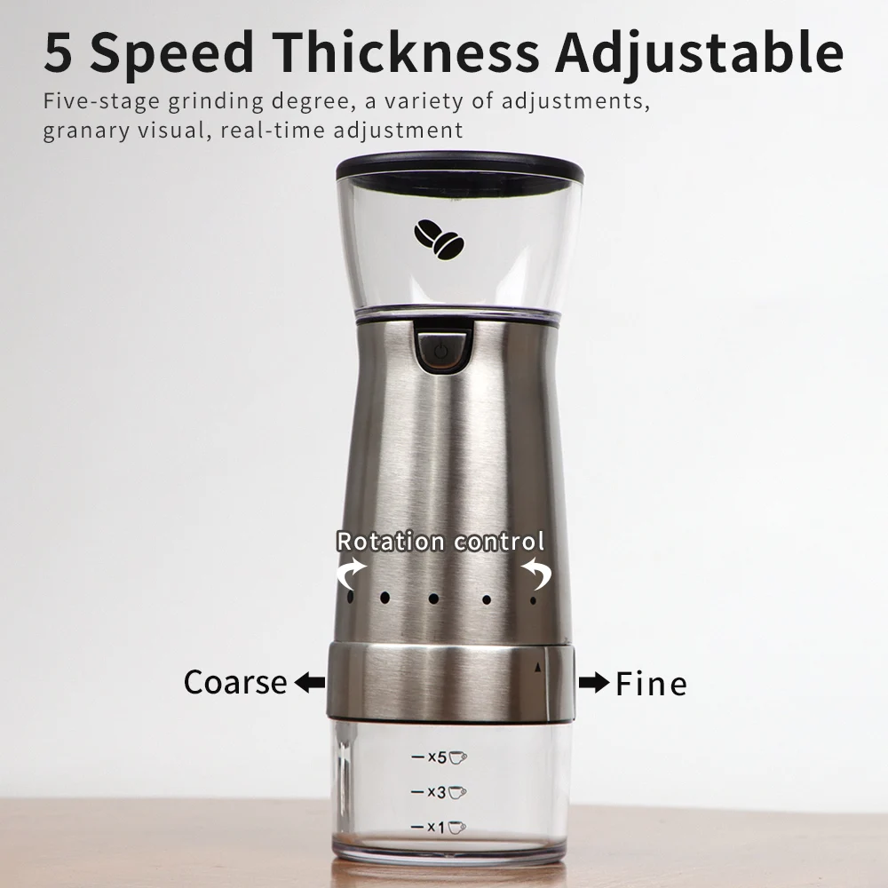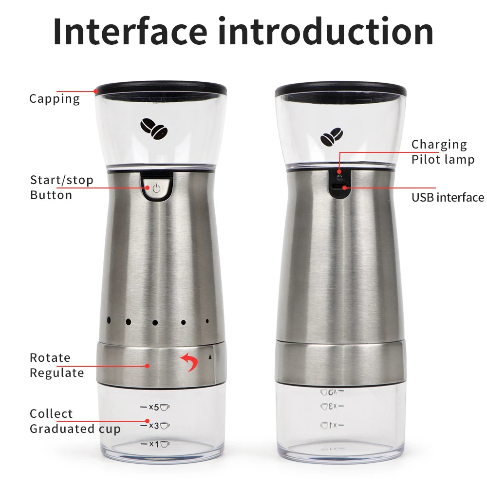 • Portátil y conveniente: lleve su café mientras viaja con este molinillo de café eléctrico portátil que es fácil de transportar.