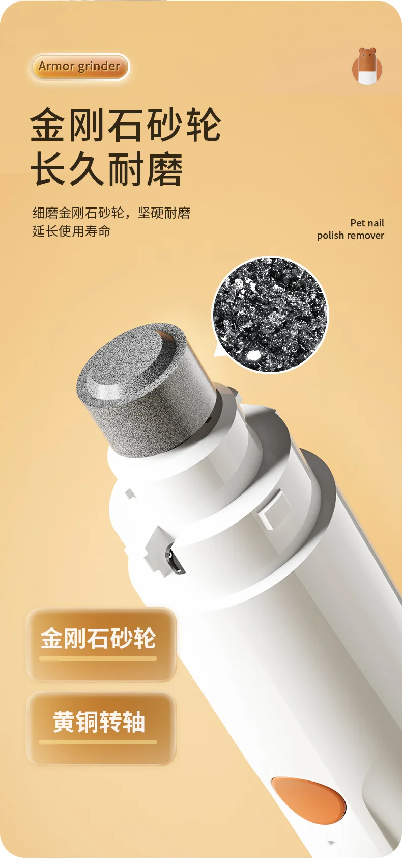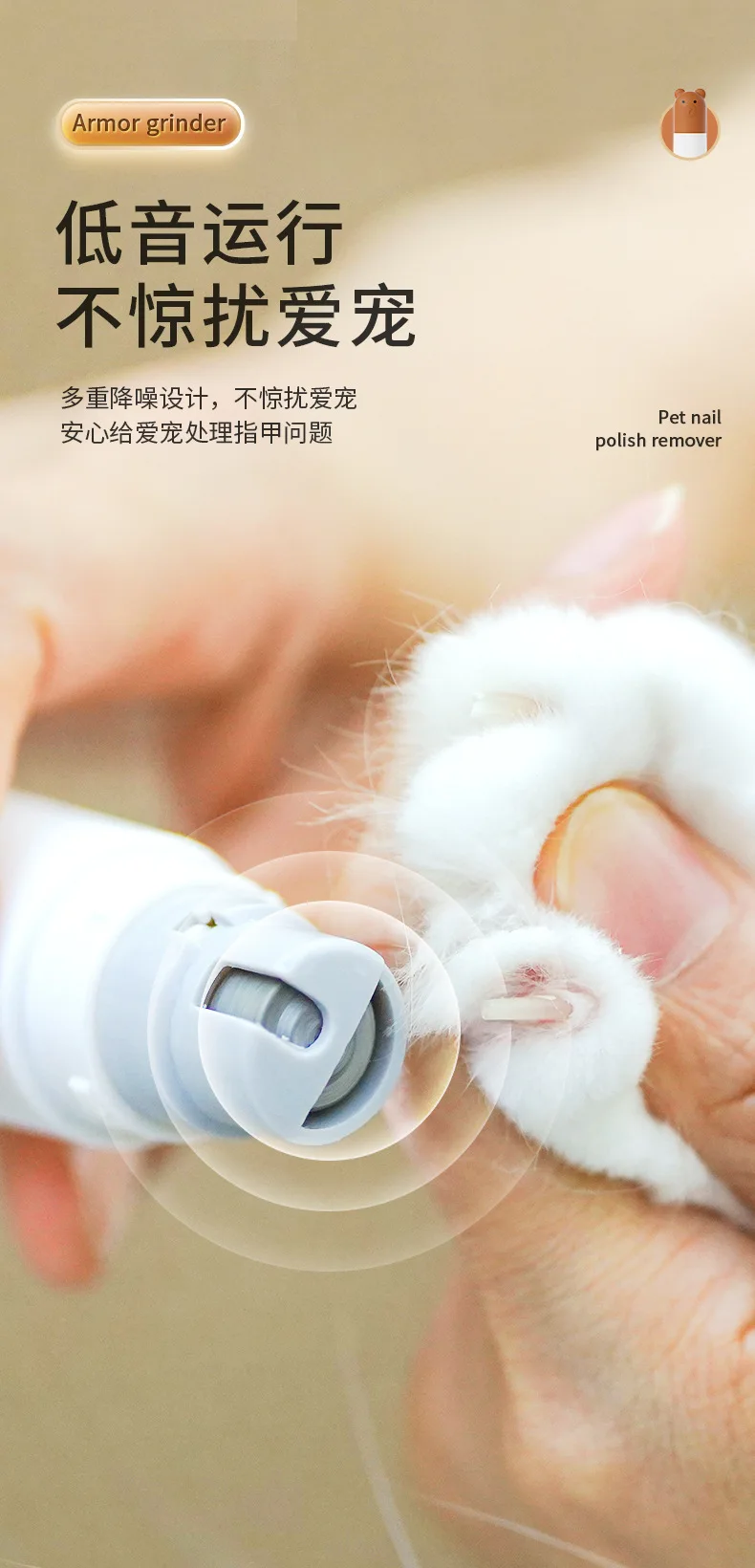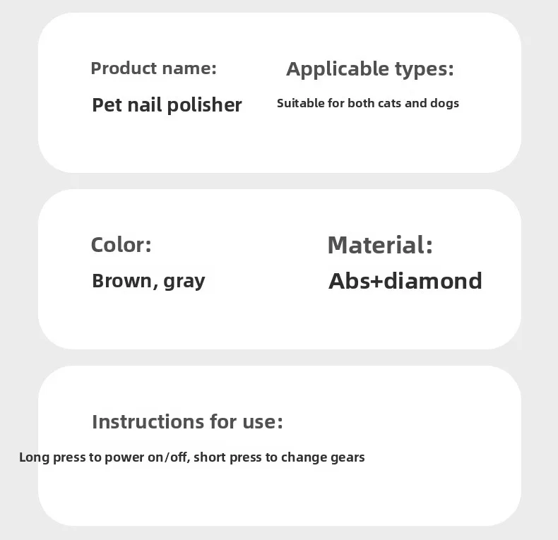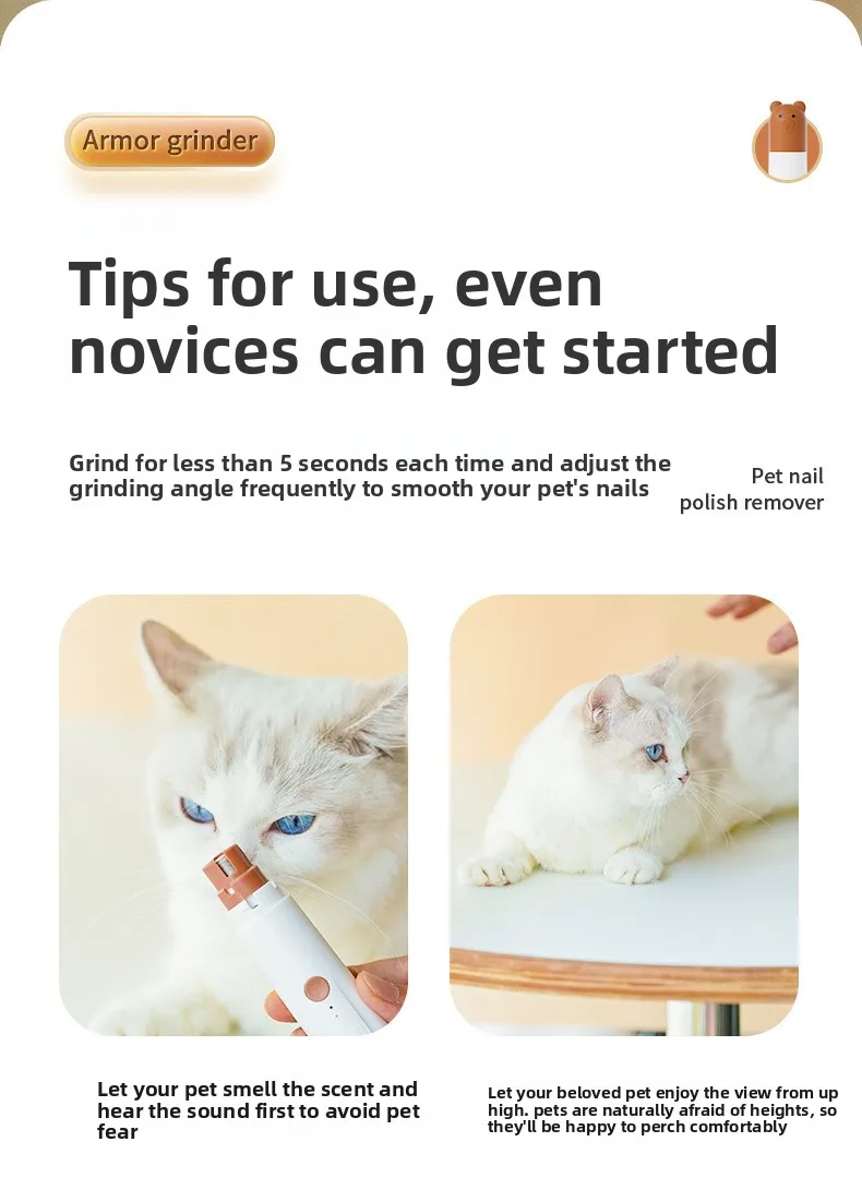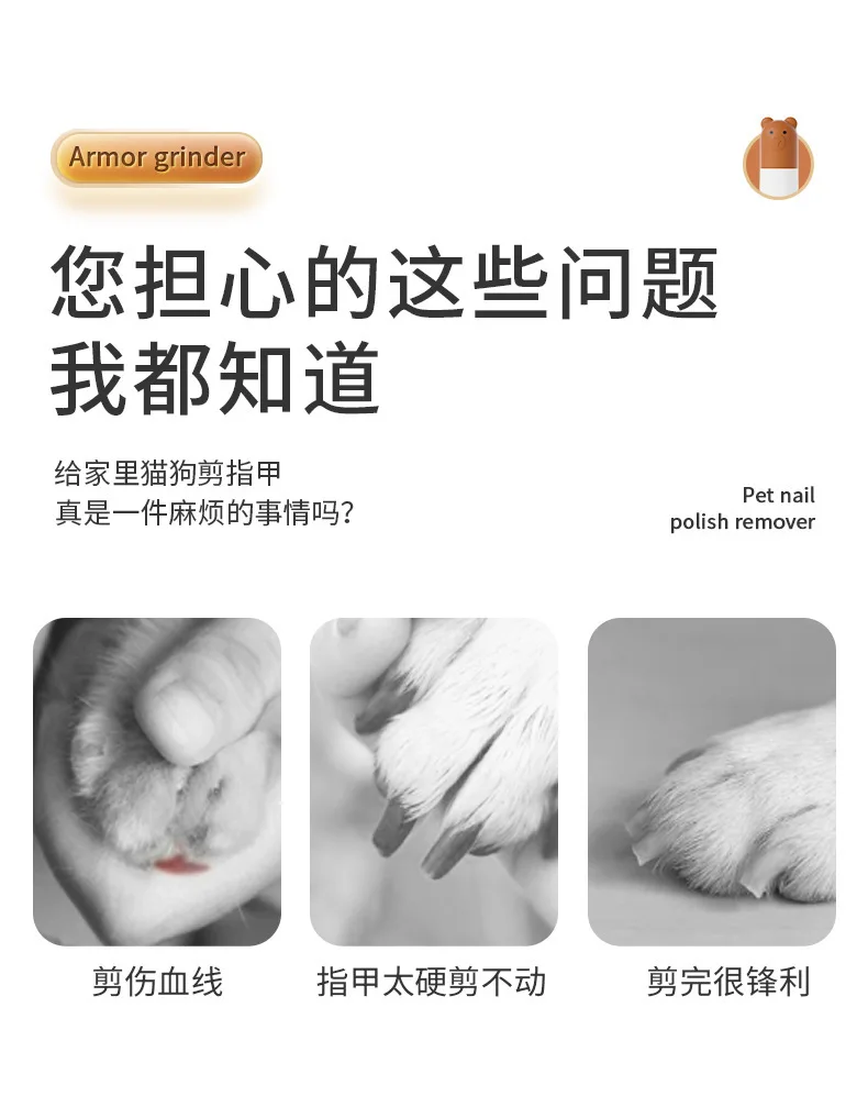 Molinillo de uñas eléctrico portátil con anillo de arena ligero, cortaúñas para perros grandes y pequeños, suministros para mascotas