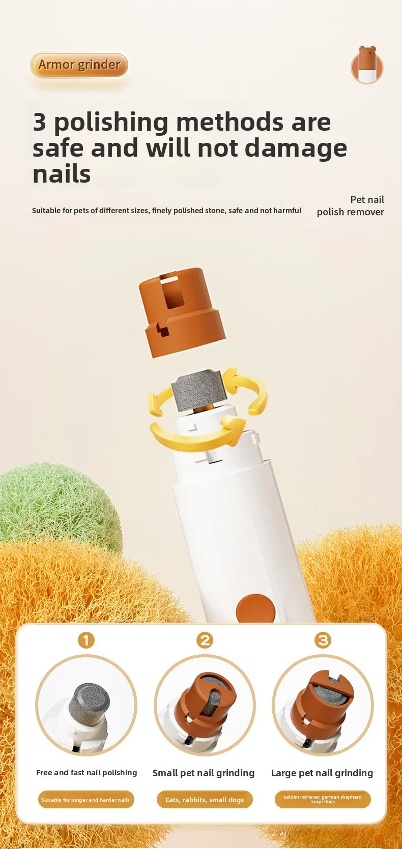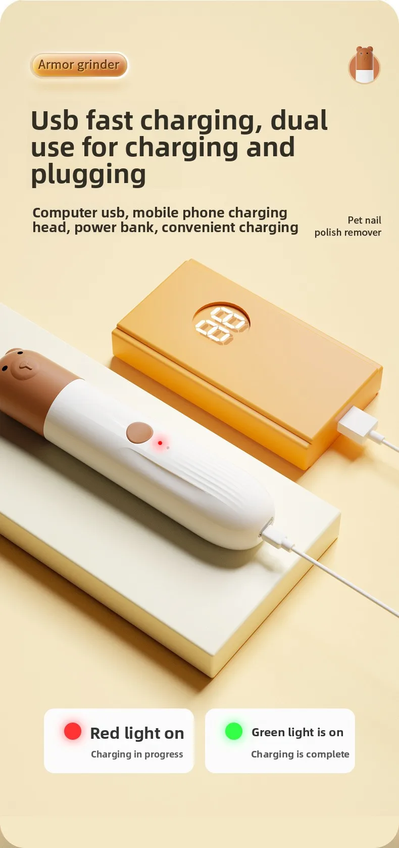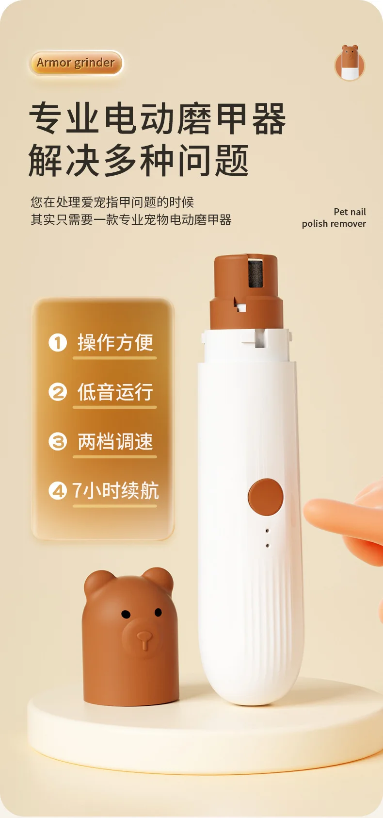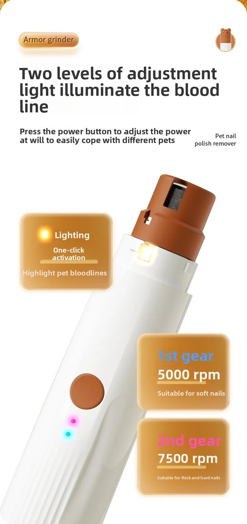 Molinillo de uñas eléctrico portátil con anillo de arena ligero, cortaúñas para perros grandes y pequeños, suministros para mascotas