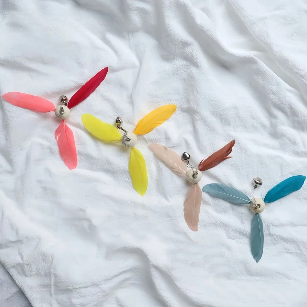 Molino de viento giratorio de plumas de colores, palo de Teaser para gatos, cabezal de repuesto, juguete para mascotas, 2 uds./3 uds.