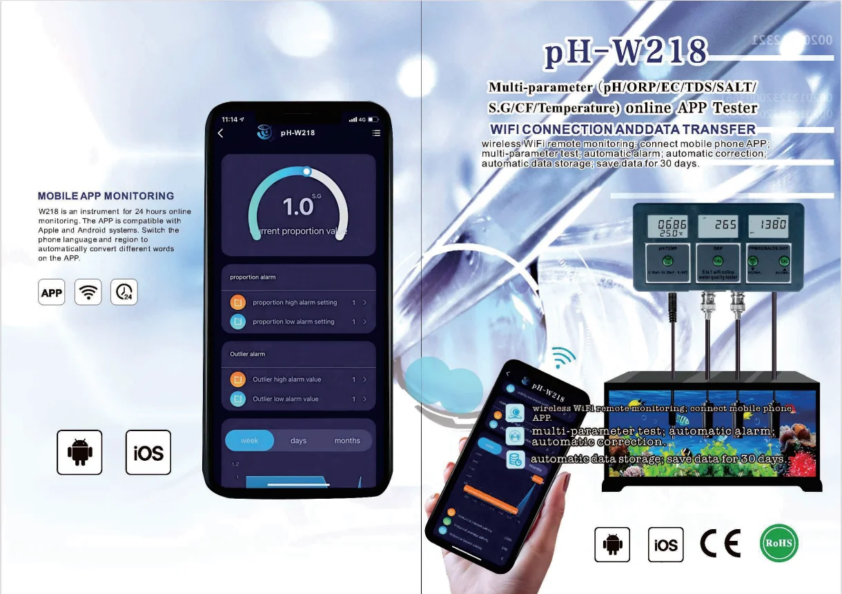 W218 es un instrumento para el monitoreo en línea las 24 horas. La APP es compatible con los sistemas Apple y Android. Cambie el idioma y la región del teléfono para convertir automáticamente diferentes palabras en la aplicación