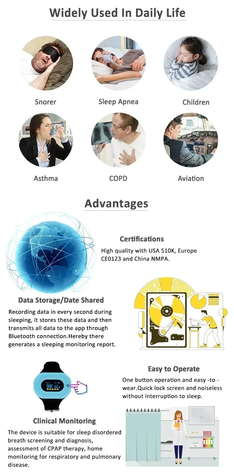 Instrucciones: BM2000D puede satisfacer la demanda de la mayoría de las personas por controlar la apnea del sueño.Puede medir con precisión los tiempos de apnea durante el sueño, lo que se ha demostrado en una gran cantidad de pruebas clínicas. Aplicación: El equipo es adecuado para el monitoreo respiratorio del sueño o de la apnea, especialmente el monitoreo de la apnea y la hipopnnea. Características: El equipo es adecuado para el monitoreo respiratorio del sueño o de la apnea, especialmente el monitoreo de la apnea y la hipopnnea.