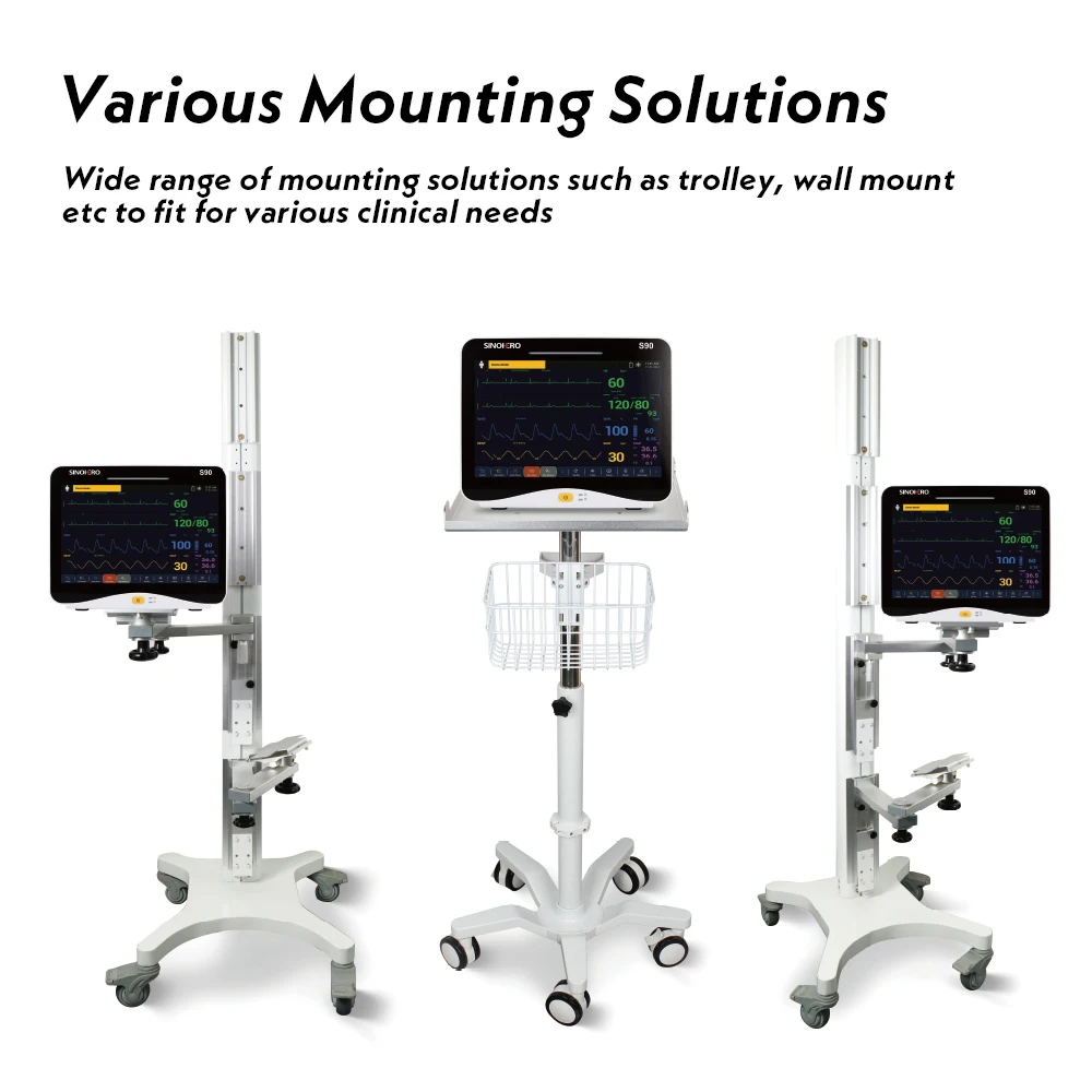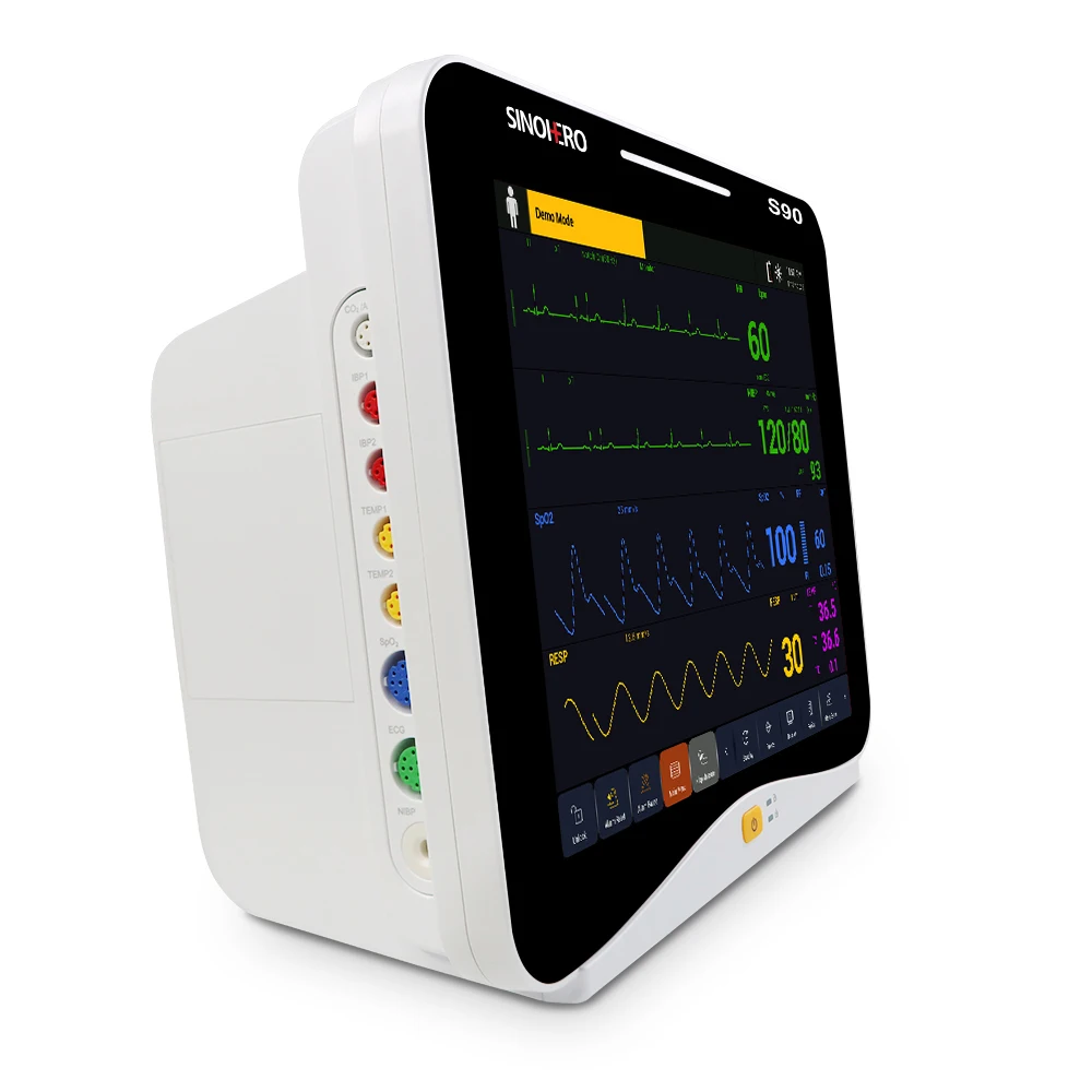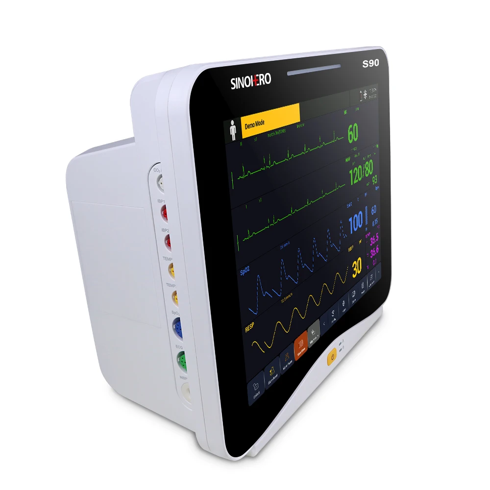 Monitor de paciente multiparámetro con pantalla táctil S90 de 12.1''. El monitor tiene abundantes funciones que se pueden utilizar para monitoreo clínico con adultos, pediátricos y recién nacidos.Los usuarios pueden seleccionar diferentes configuraciones de parámetros según los diferentes requisitos.