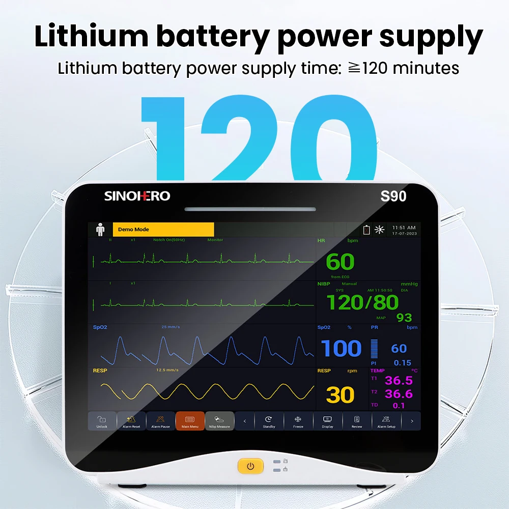 1 monitor de paciente con pantalla táctil HD S90 de 12,1 pulgadas