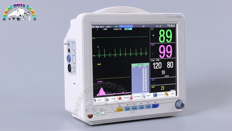 2. Parameters:ECG (5 leads), Respiration, NIBP, SpO2, Heart rate, Temperature