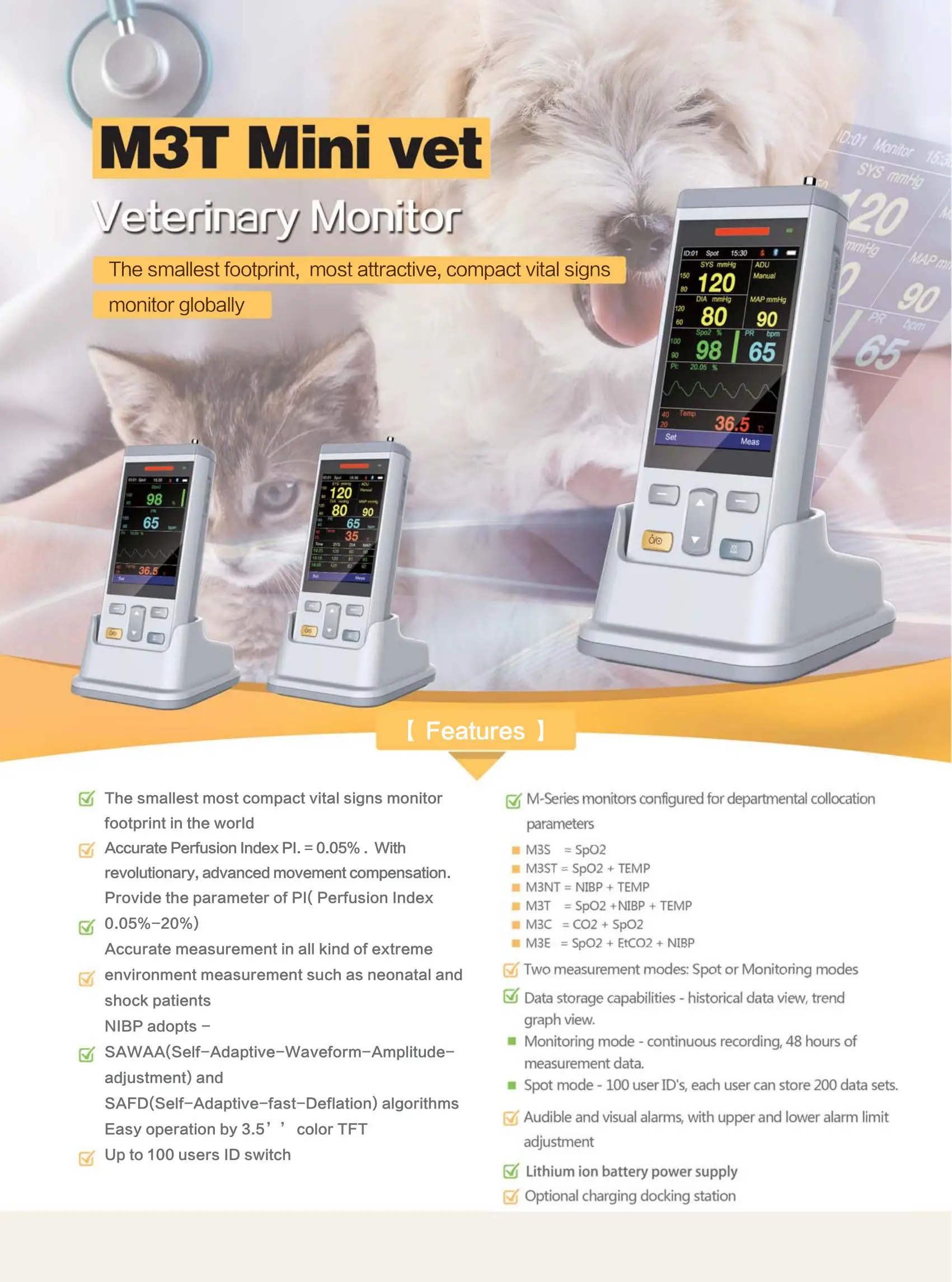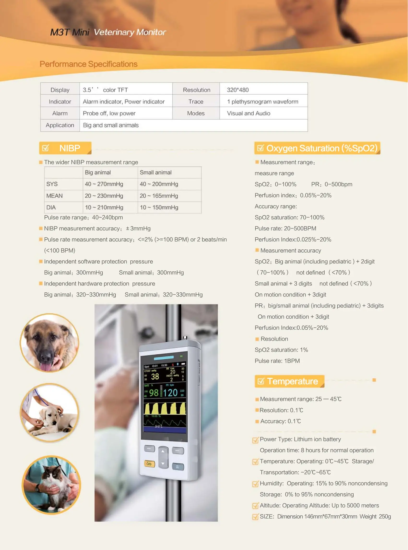 Monitor portátil para mascotas M3T Mini, Monitor de oxígeno en sangre, presión arterial, temperatura corporal, móvil recargable incorporado