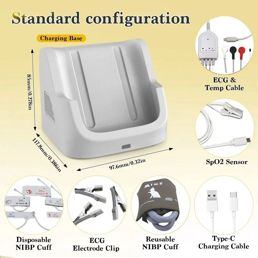 12, multifunción para SpO2, HR, Temp, ECG, RR y NIBP