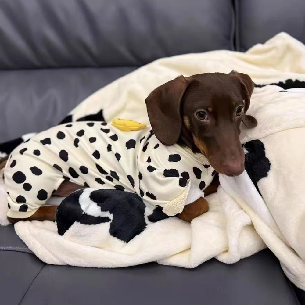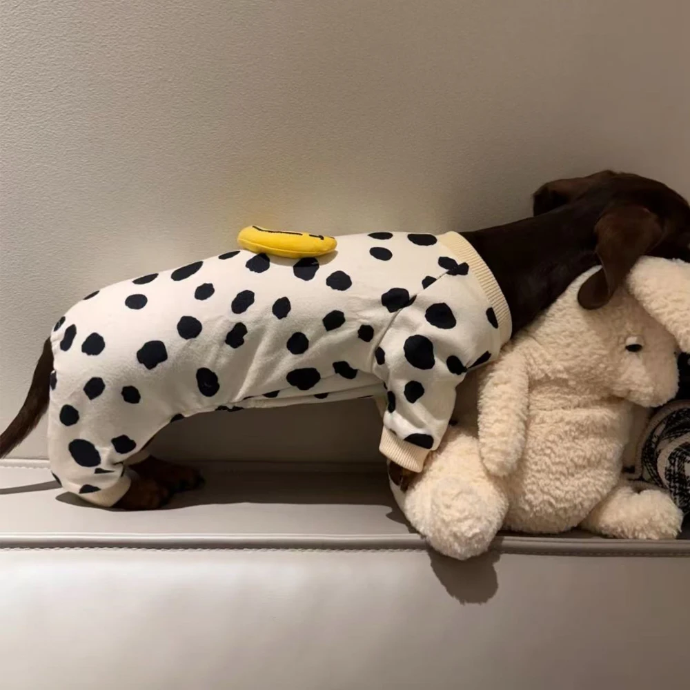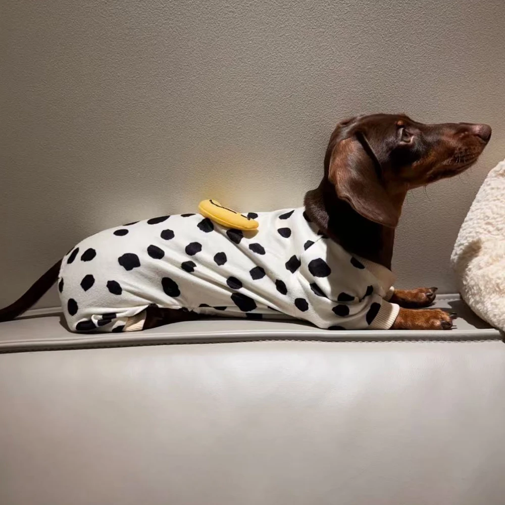 Mono Bannana de 4 patas con manchas de vaca para perros Dachshund, sudadera de primavera y otoño para perros Wiener, abrigo de invierno para tejón