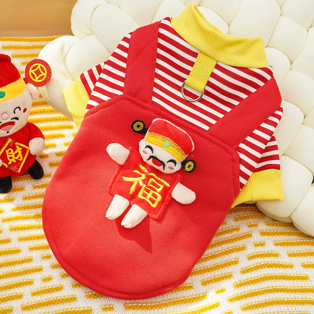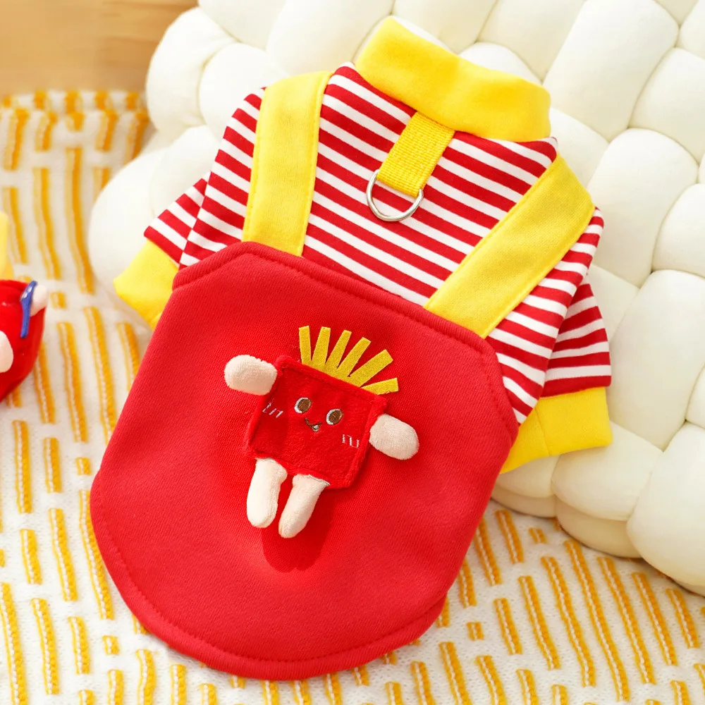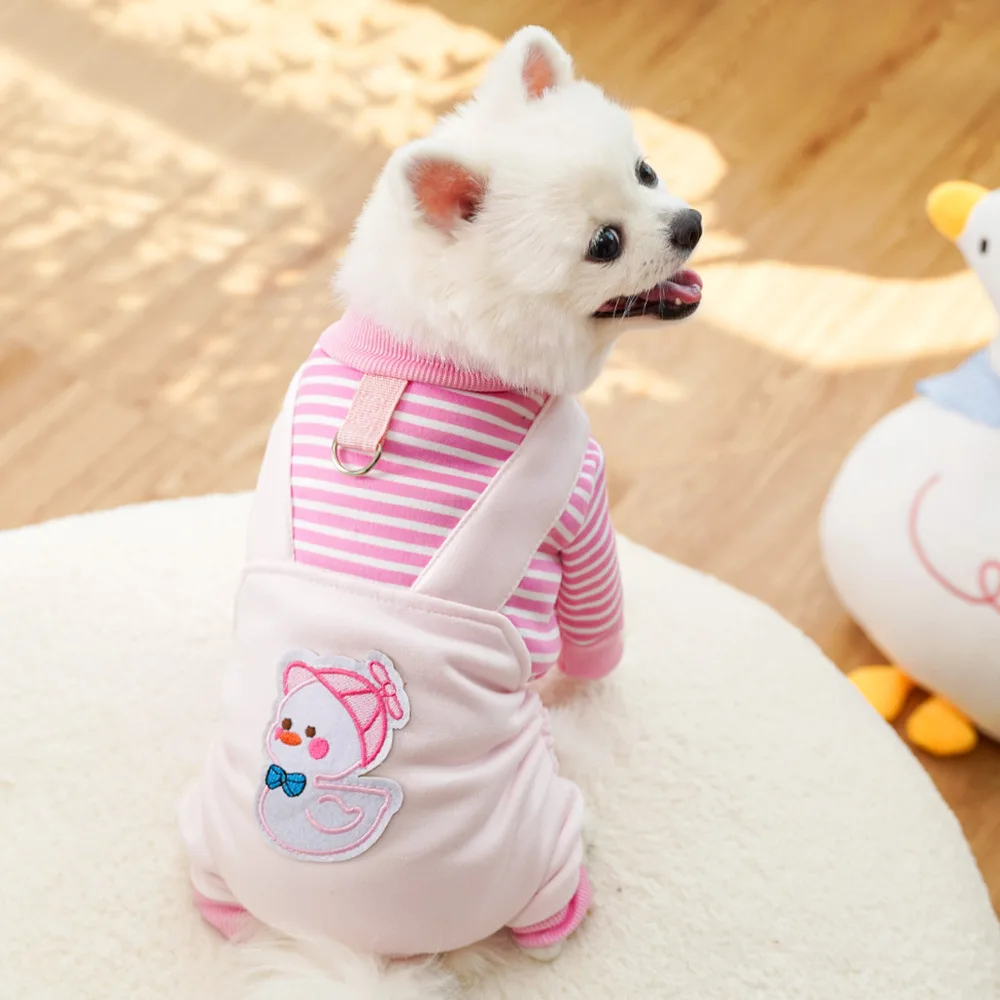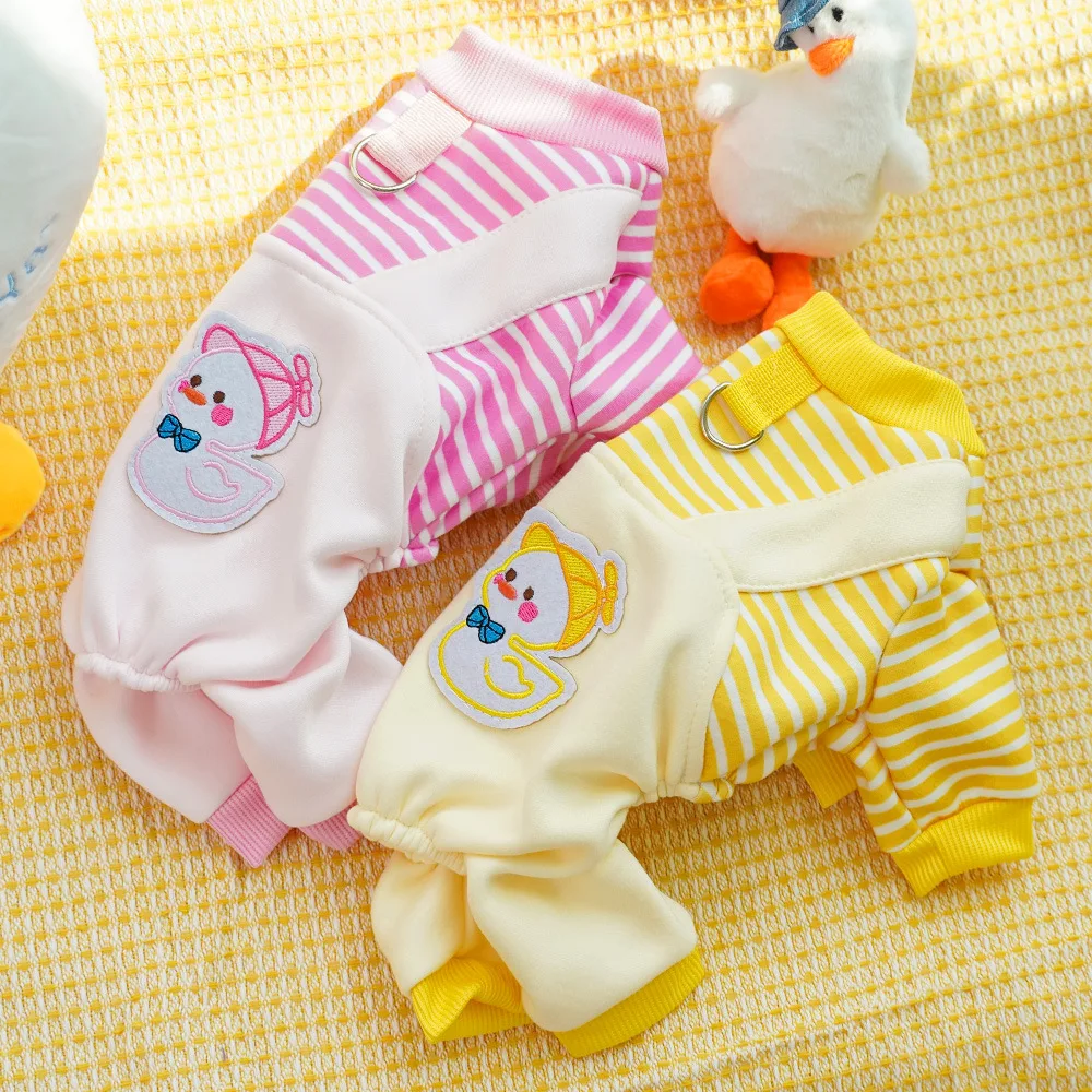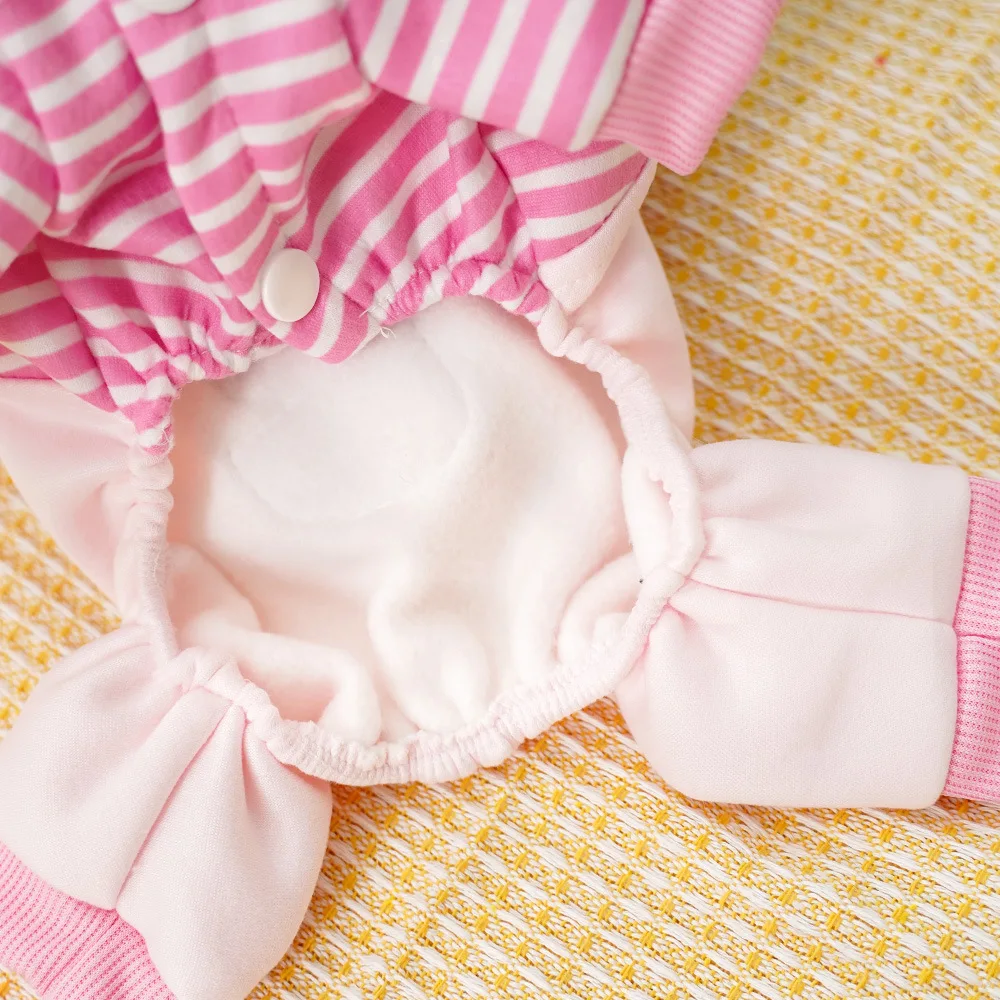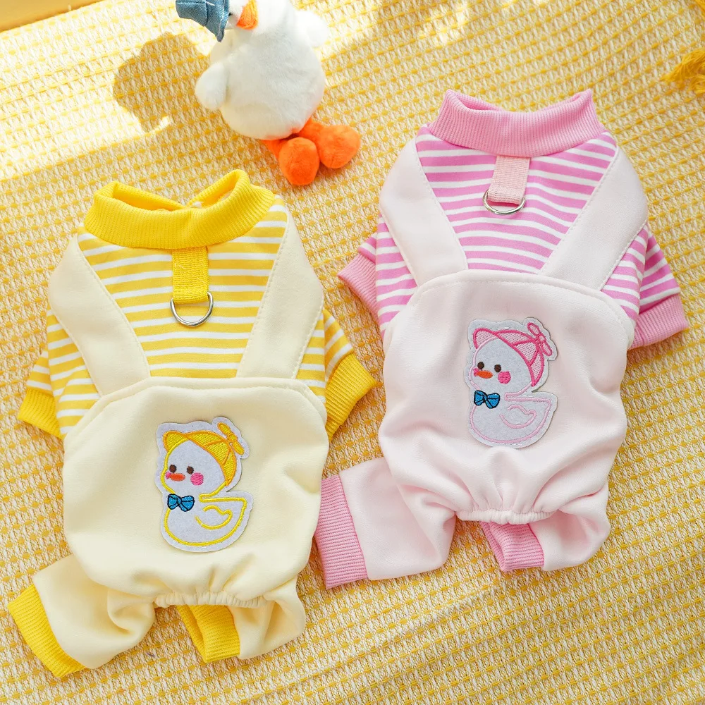 Mono a rayas para mascotas, monos para perros, ropa para perros de cuatro patas, ropa para gatos, Sudadera con capucha de lana para otoño e invierno, se puede tirar para perros pequeños