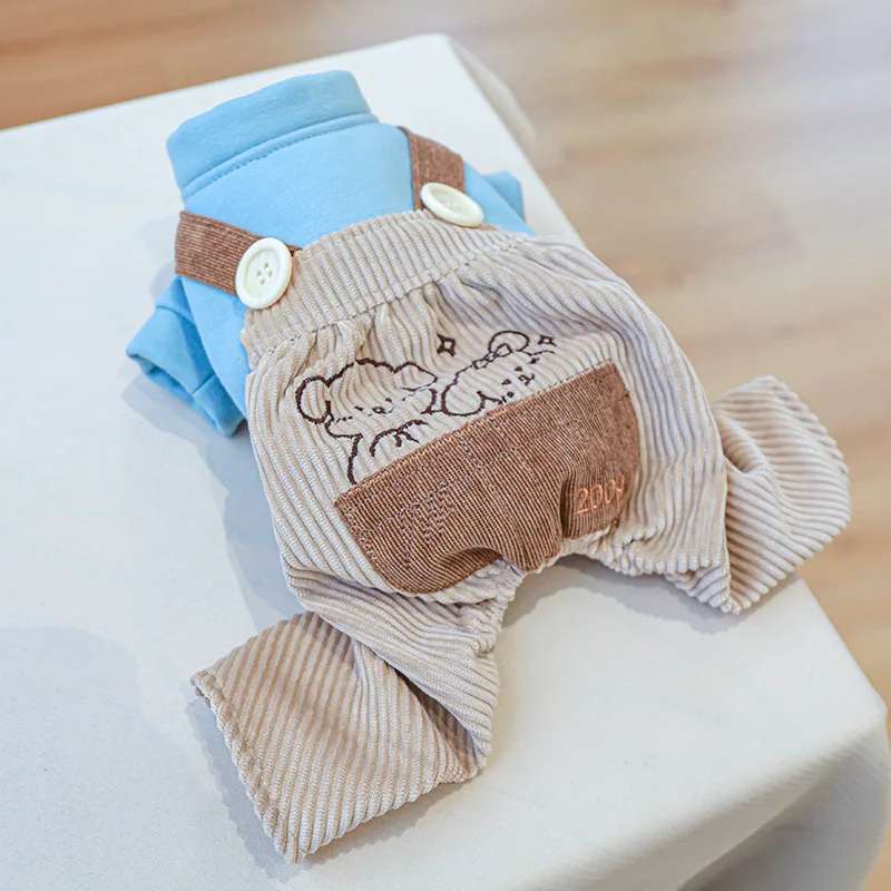 Mono azul para perro, abrigo, mono, ropa para perro, chaqueta de cuatro patas, ropa, pantalones de pana, mono, Mono para perros pequeños, Chiwawa Yorkie
