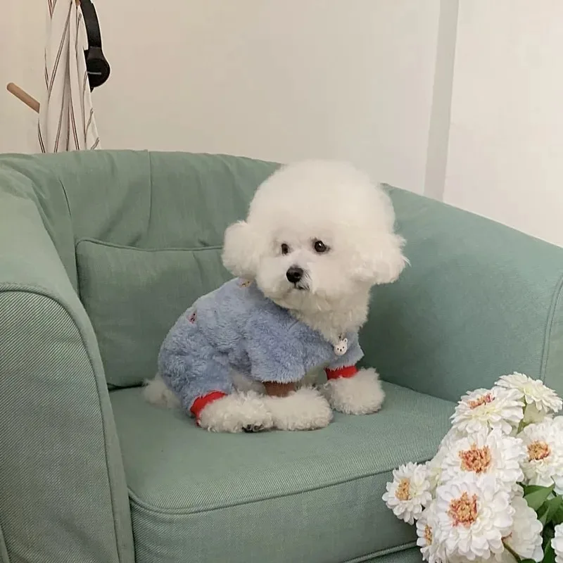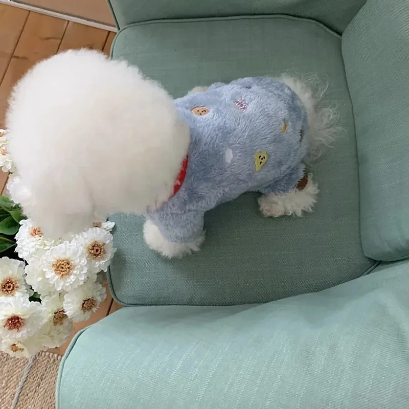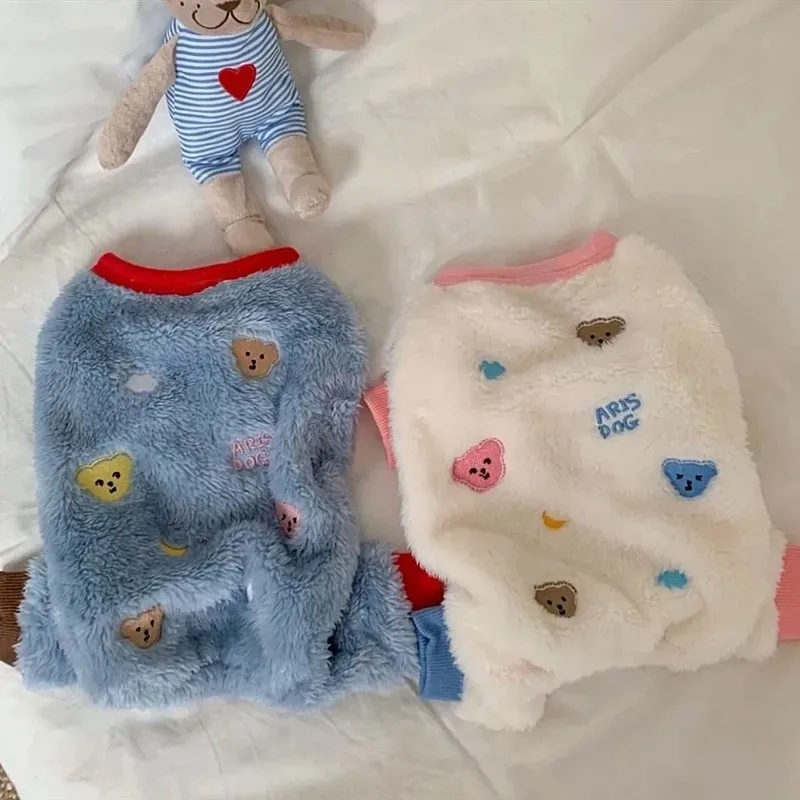 Mono bonito de oso de dibujos animados para perro, ropa cálida de lana para invierno para perros pequeños, ropa suave para cachorros, abrigo de Yorkshire Terrier