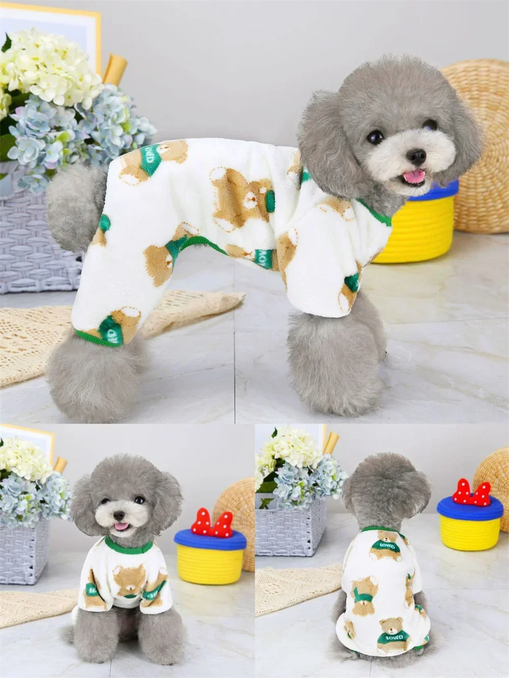 Todo perfecto muy bonito y la tela muy calentita y agradable la talla L perfecta para mi perito de 4,4 kg.El envío a sido muy rápido , recomiendo el producto y el vendedor