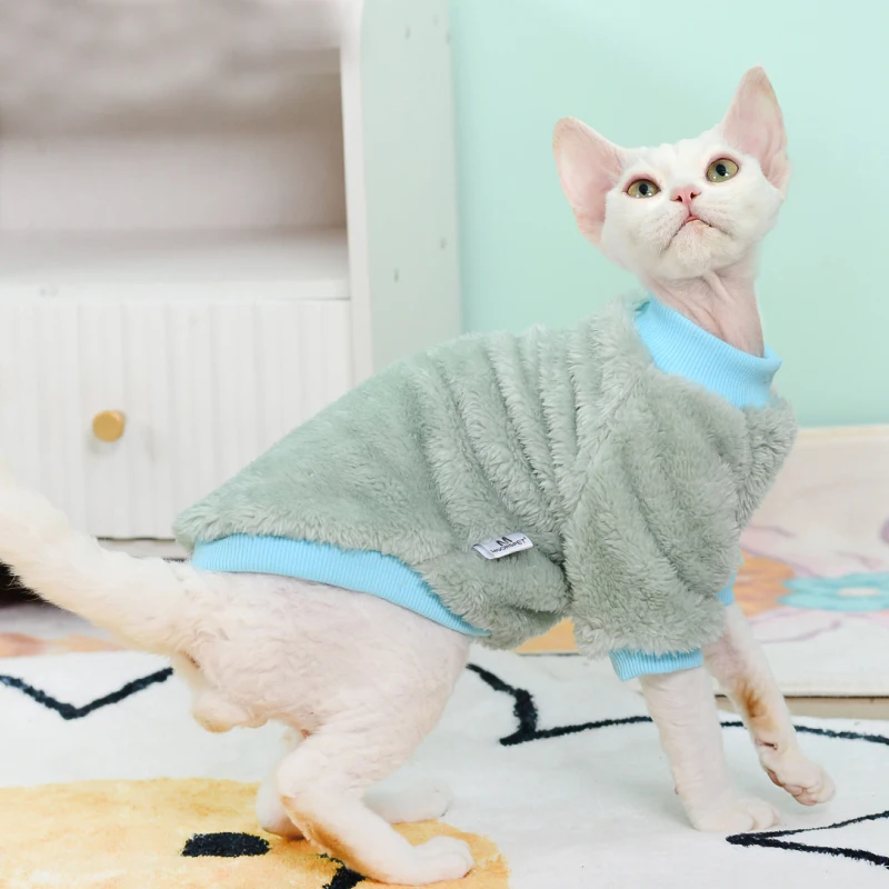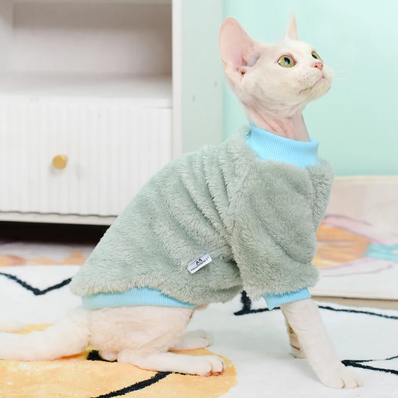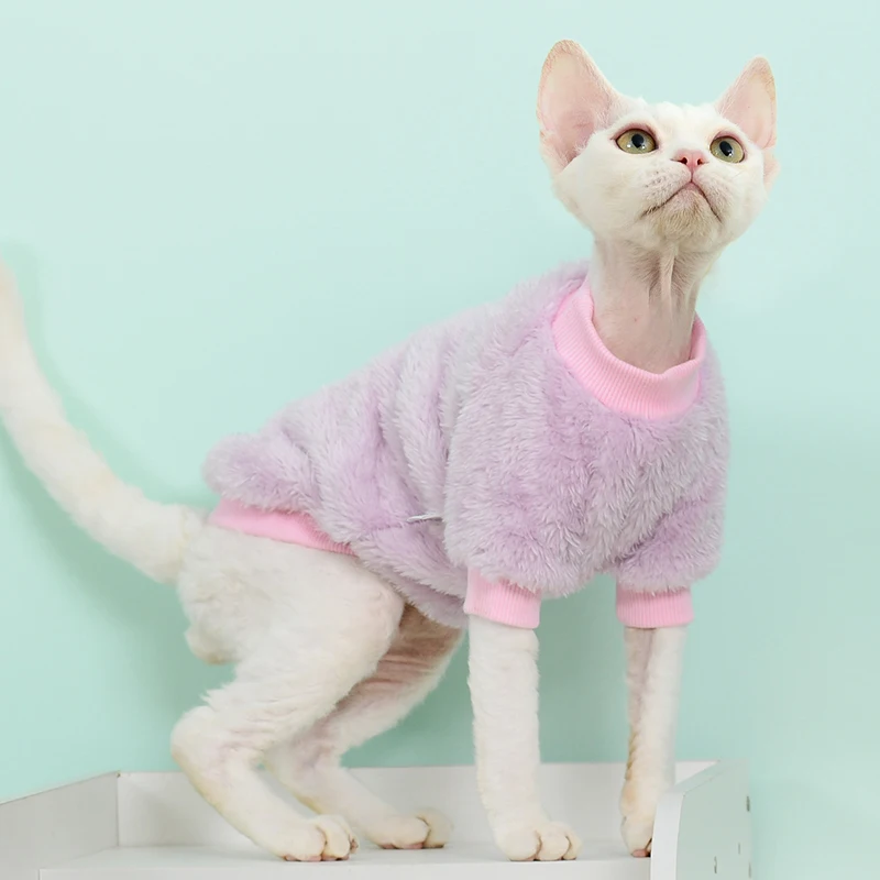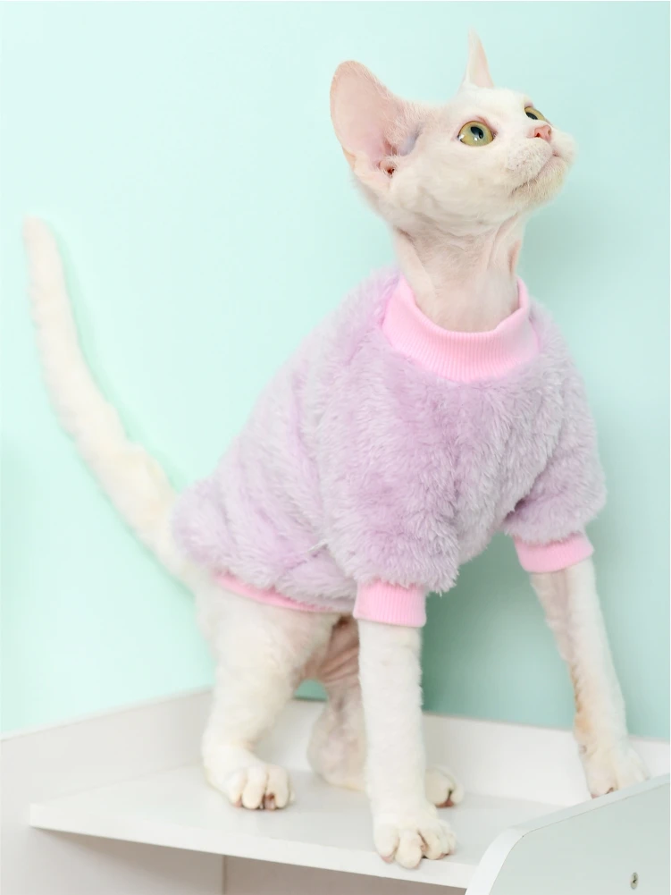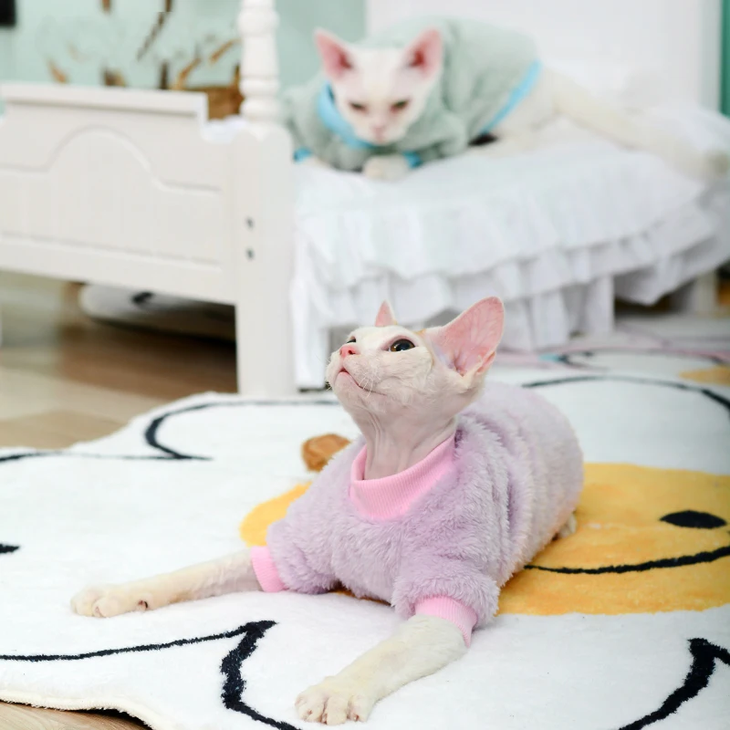 Mono cálido de lana de 2 patas para gato Sphynx, ropa de invierno, abrigo grueso de manga larga para Devon Rex, ropa de descanso suave para gatitos