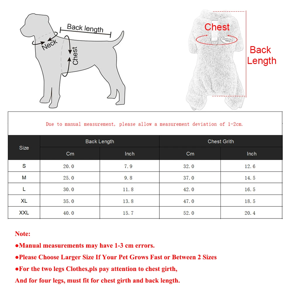 Elija una talla más grande si su mascota crece rápido o entre 2 tallas para la ropa de las dos piernas,