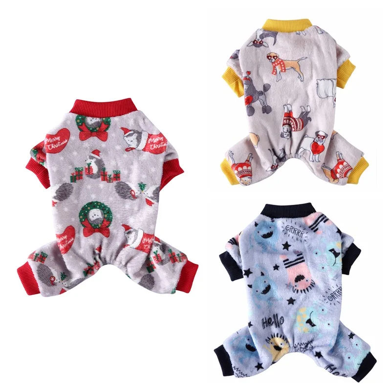 Mono con estampado de dibujos animados para perro, traje de Navidad para cachorro, gato, Jersey suave, camisa, tira, Cuello medio alto