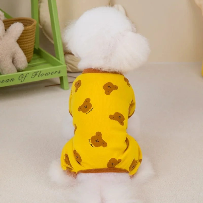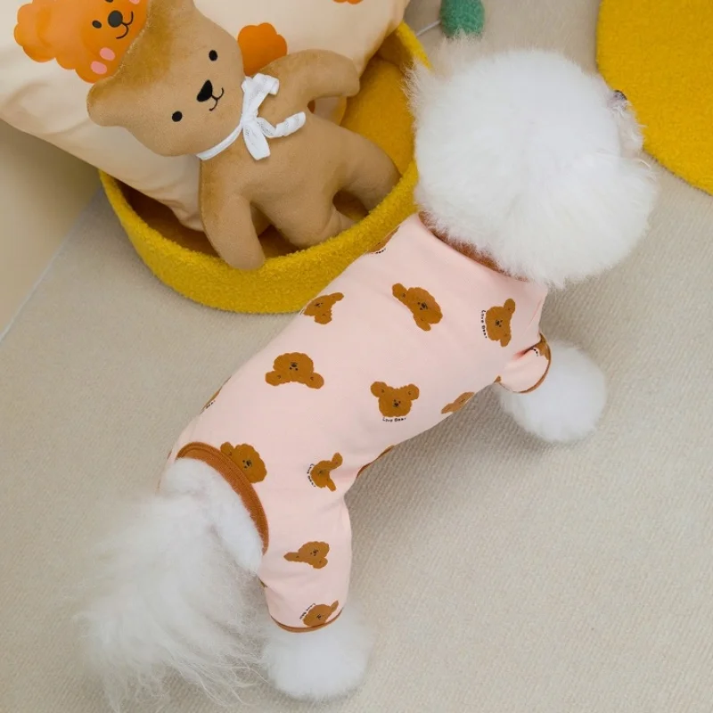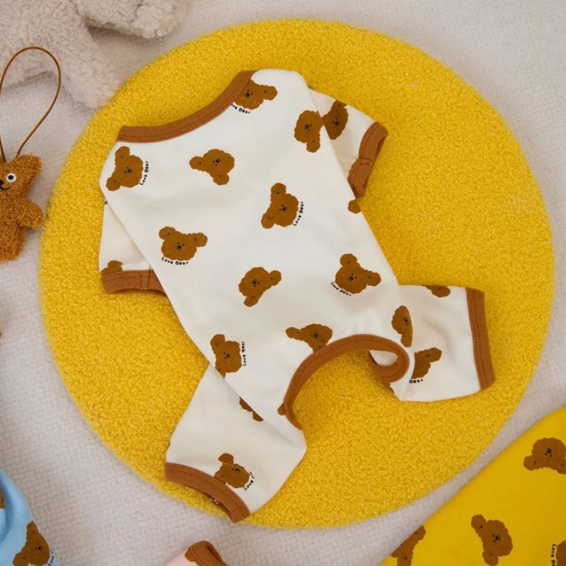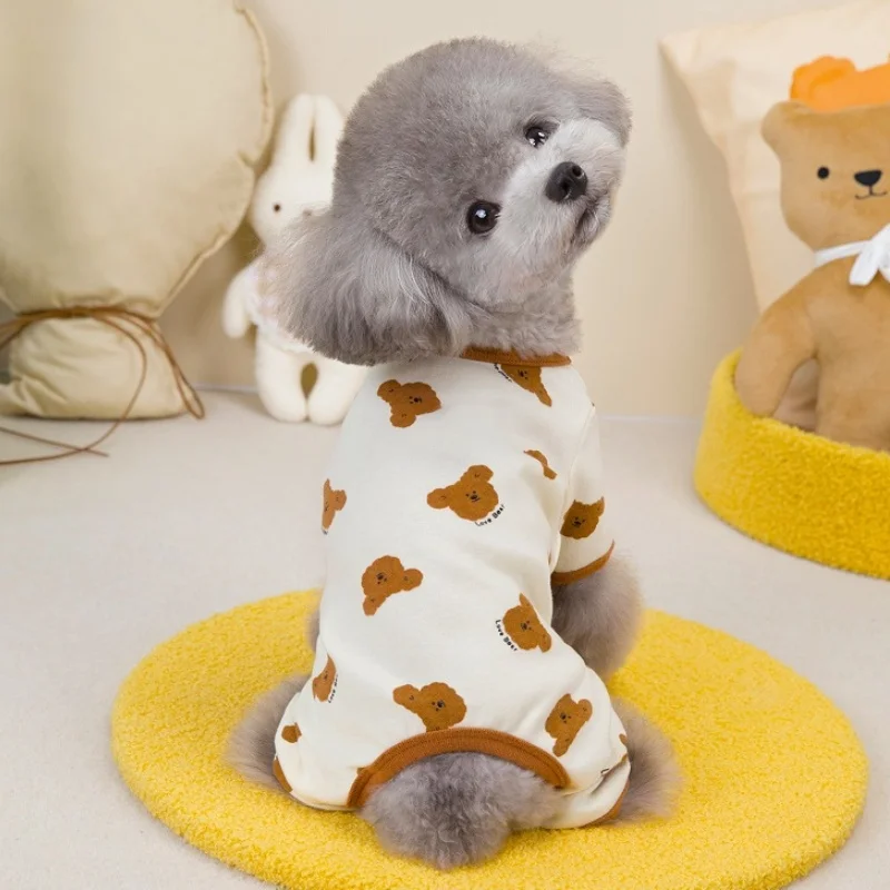 Mono con estampado de moda para perro, ropa de otoño para perro, monos suaves y cálidos para cachorros, pijamas para gatos con patrón de oso, monos para mascotas, ropa para perros