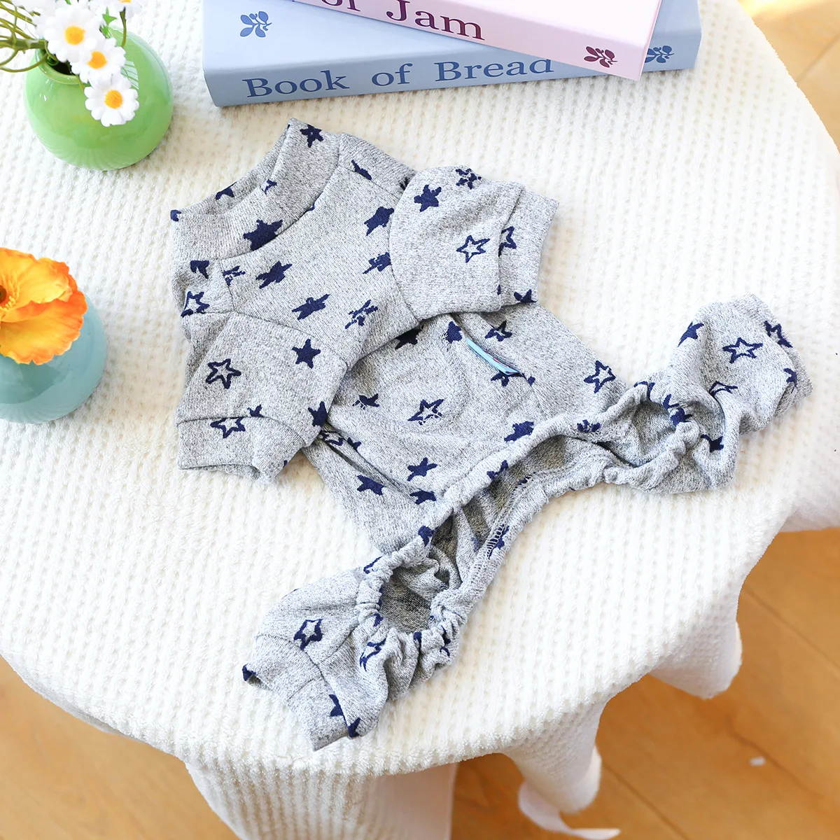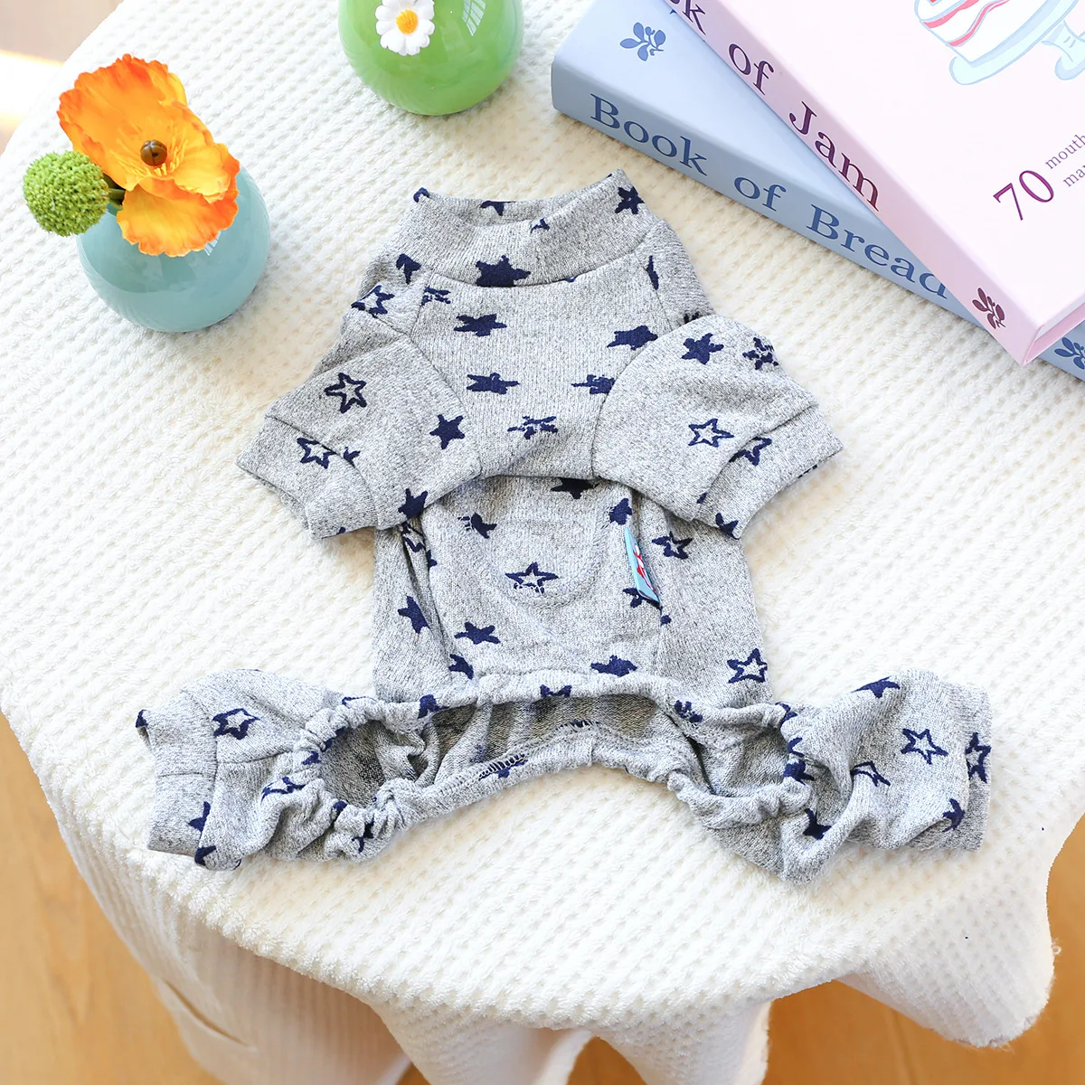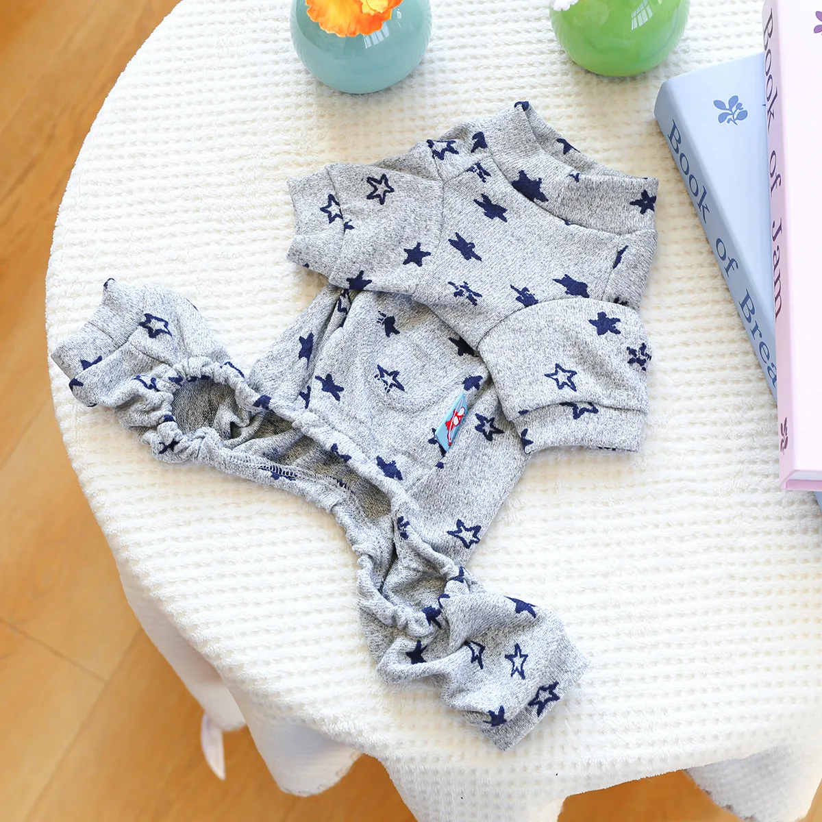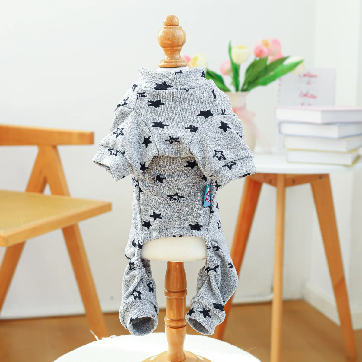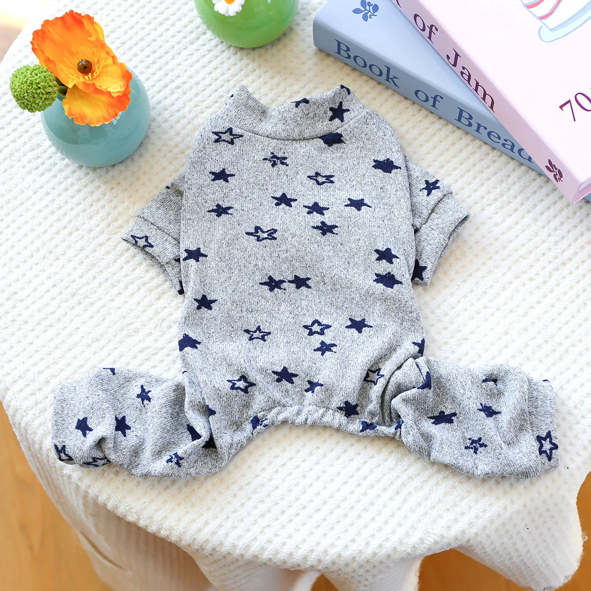 Mono de estrella de primavera para mascotas, pantalones de cuatro patas para perros, ropa para el hogar con estrella gris, camisa Base, ropa para cachorros, pijamas para perros