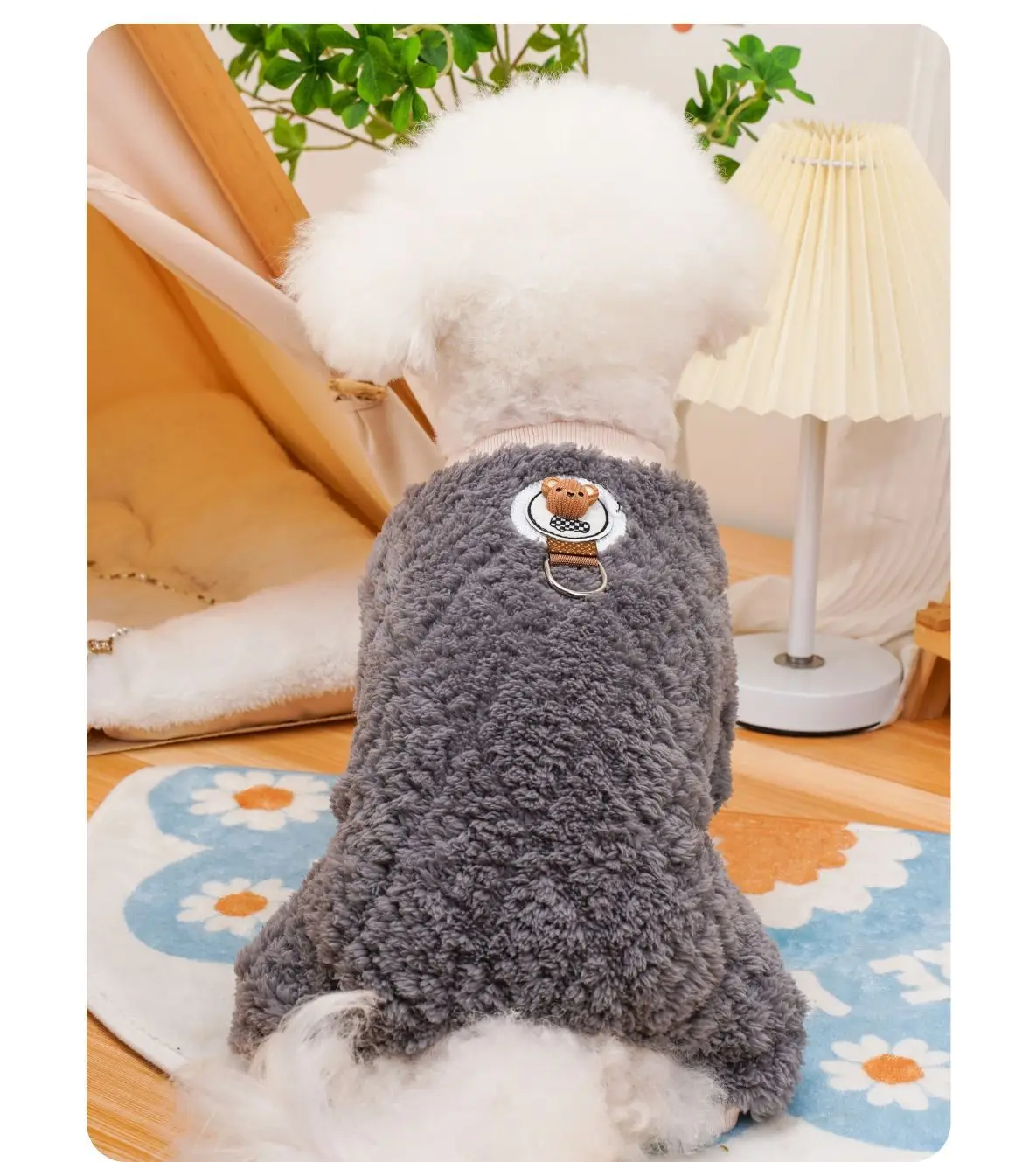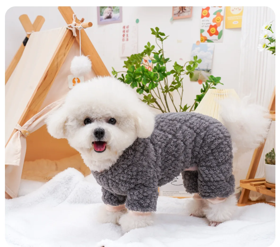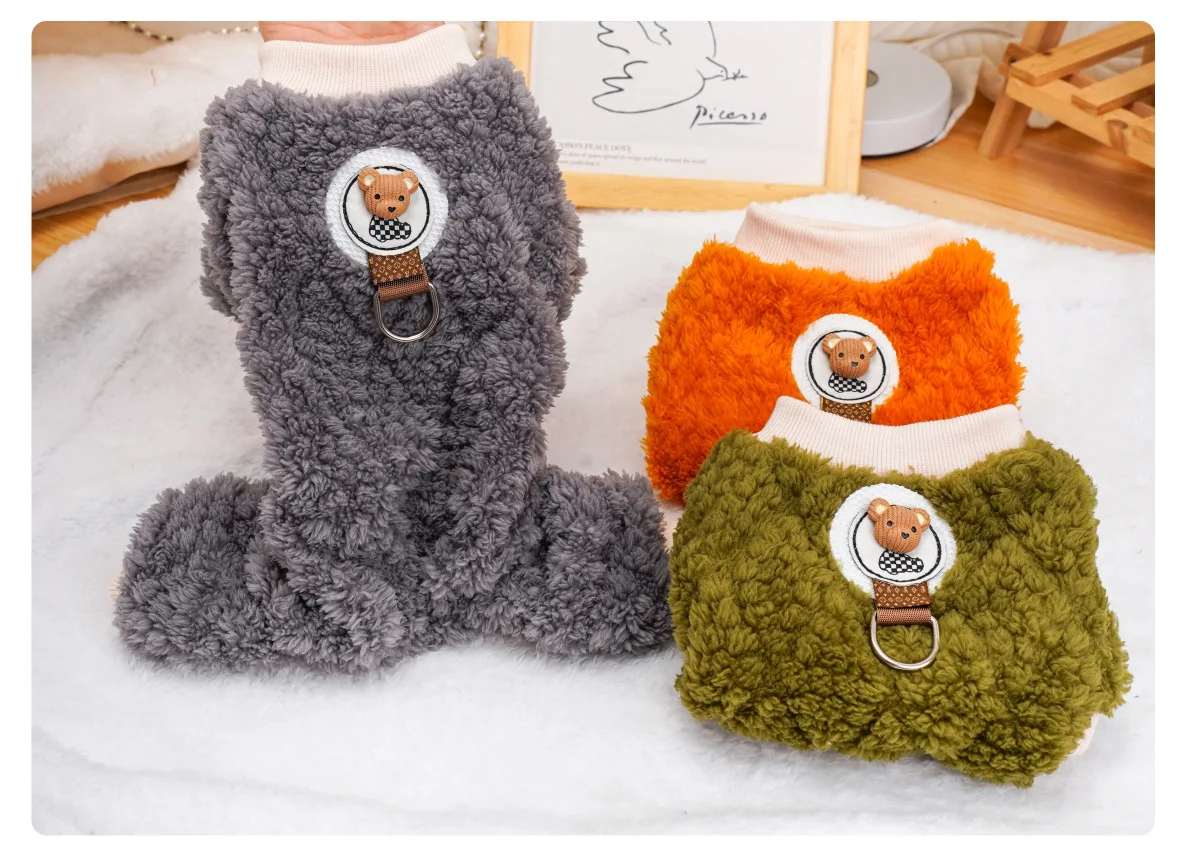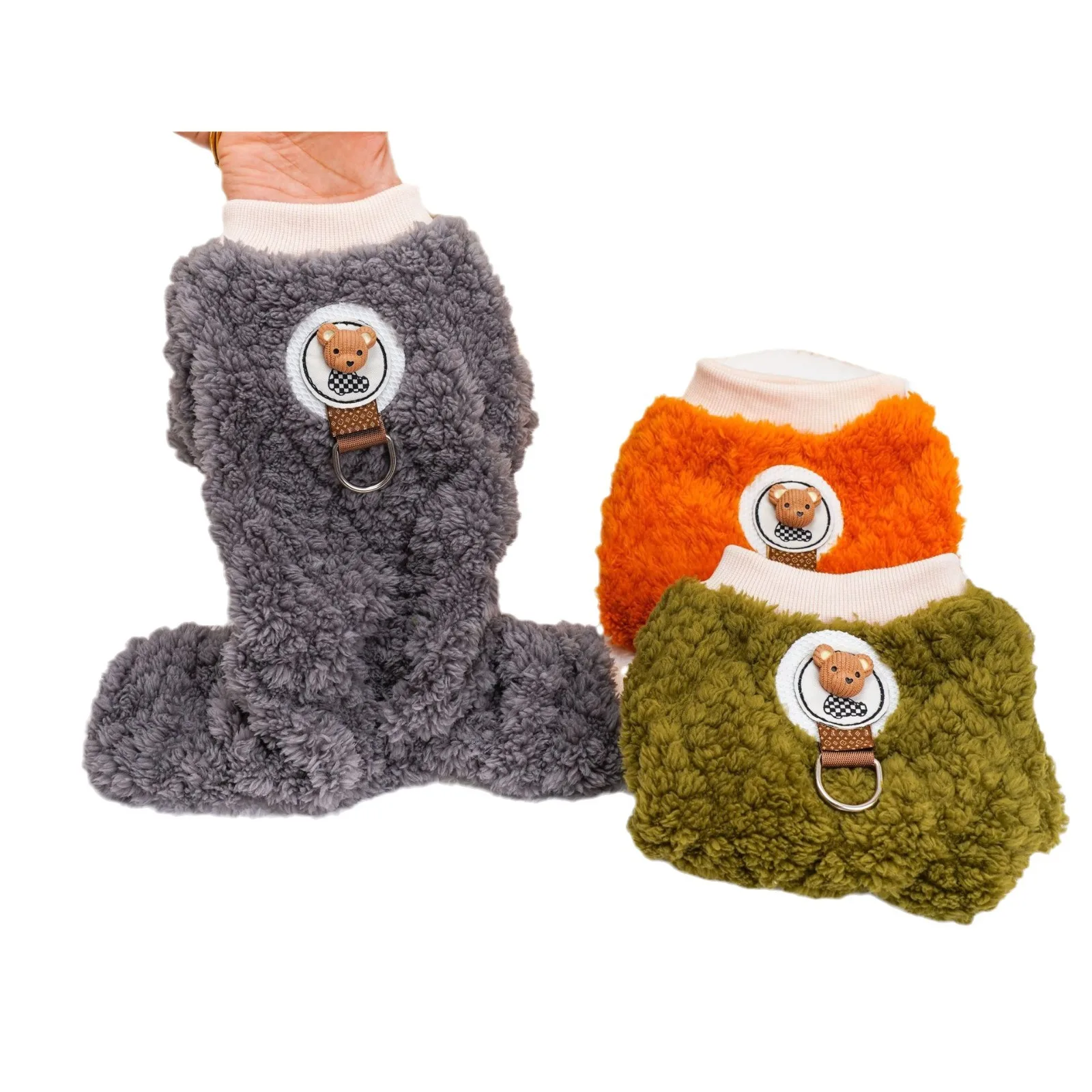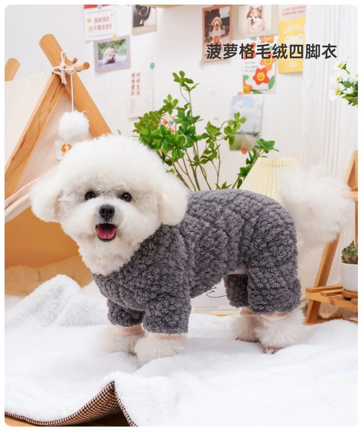 Mono de felpa para mascotas, ropa de cuatro patas, cachorros, gatos, pijamas para perros pequeños, Otoño e Invierno