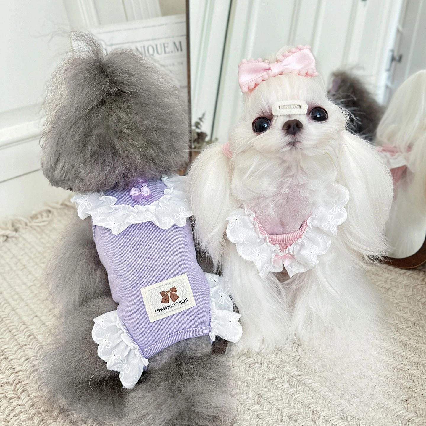 Mono de felpa de otoño e invierno para mascotas con encaje grueso y pijamas, ropa para cachorros, chaleco para mascotas para perros pequeños
