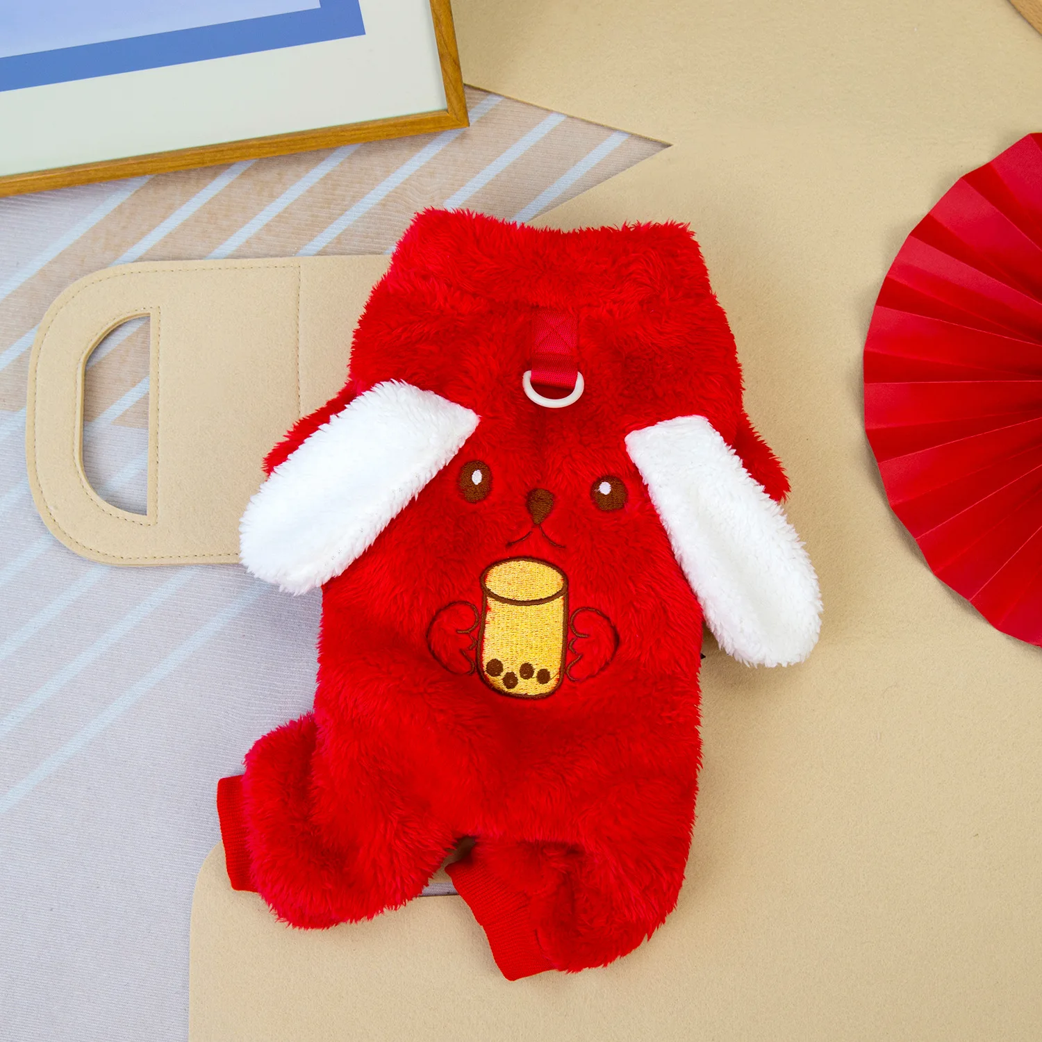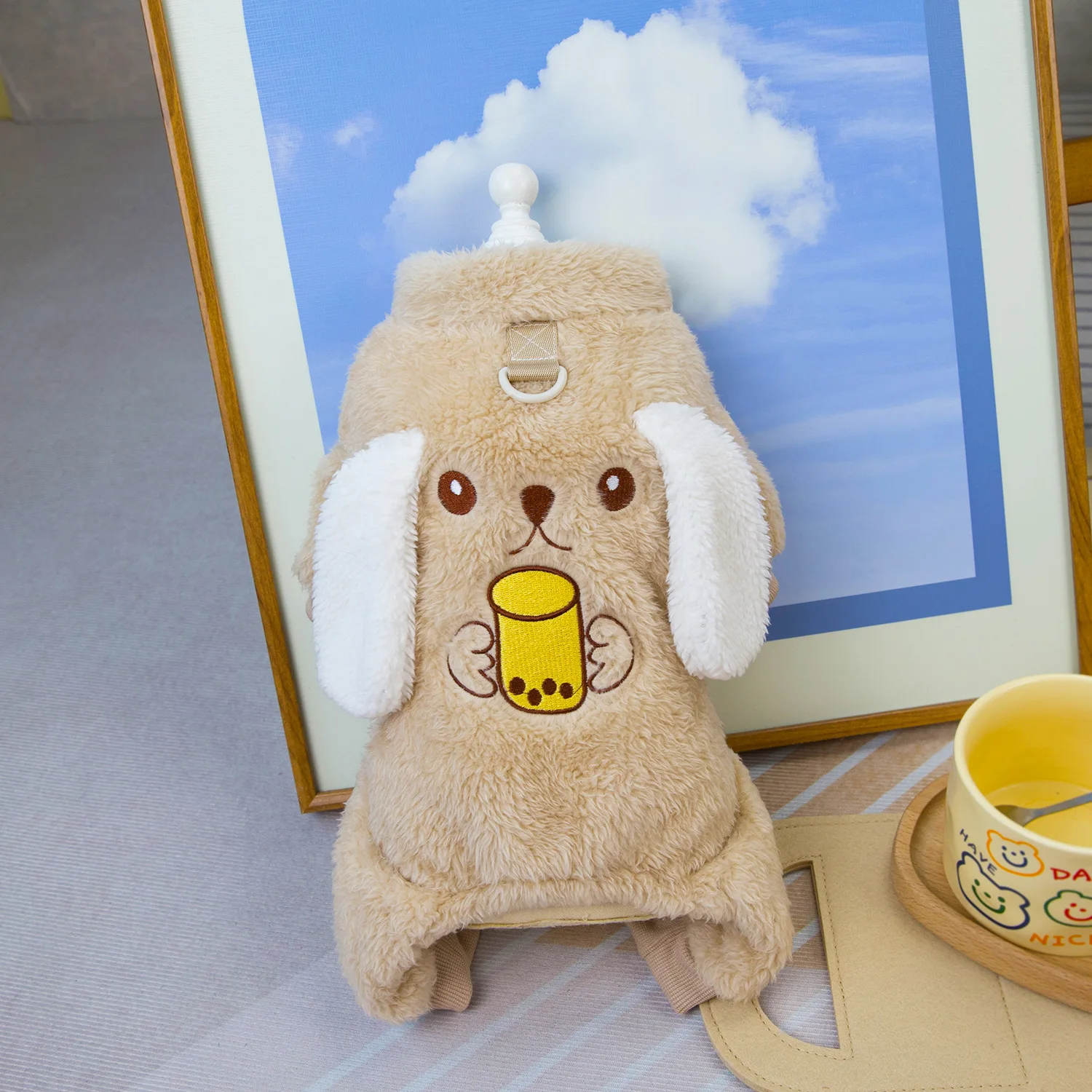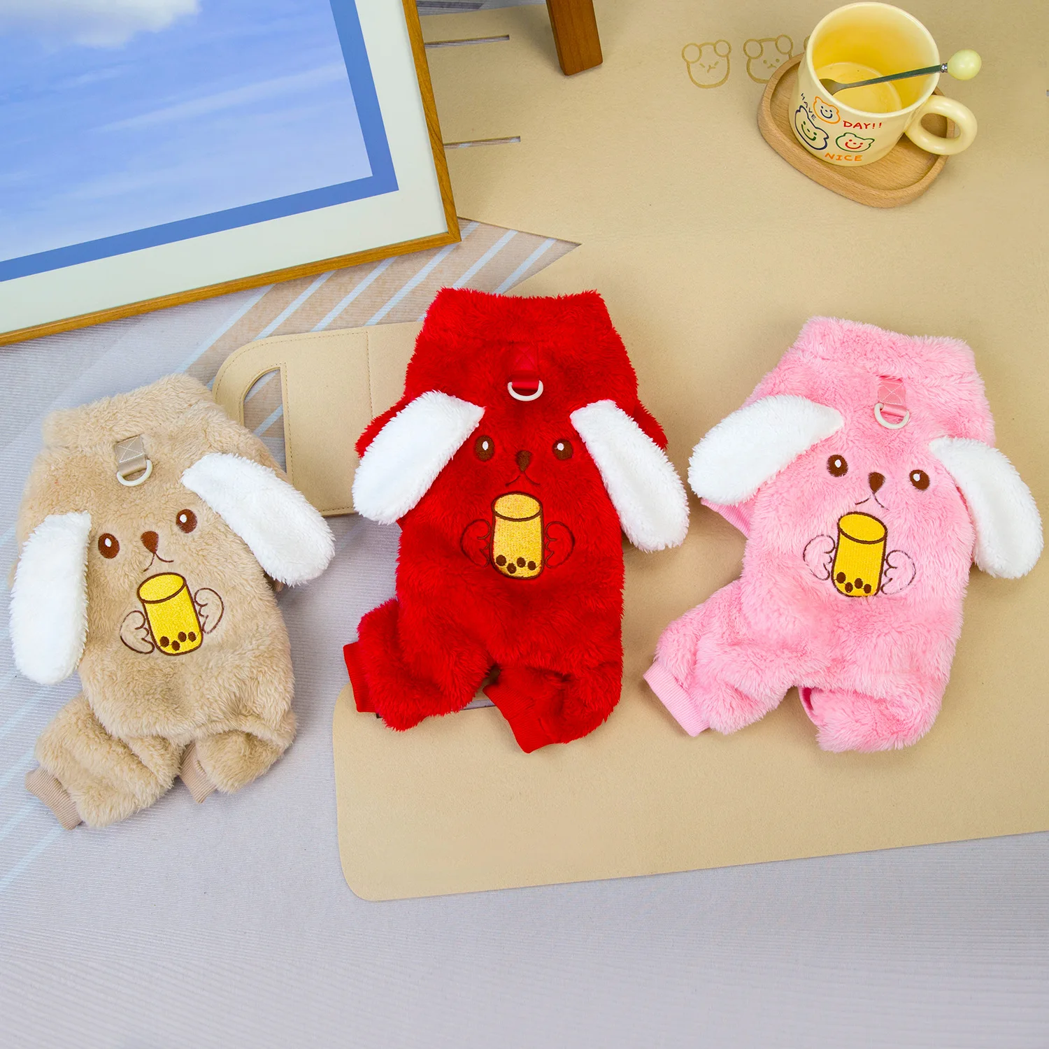 Mono de felpa para perro pequeño y gato, pijama de cuatro patas, cálido y cómodo, para Otoño e Invierno