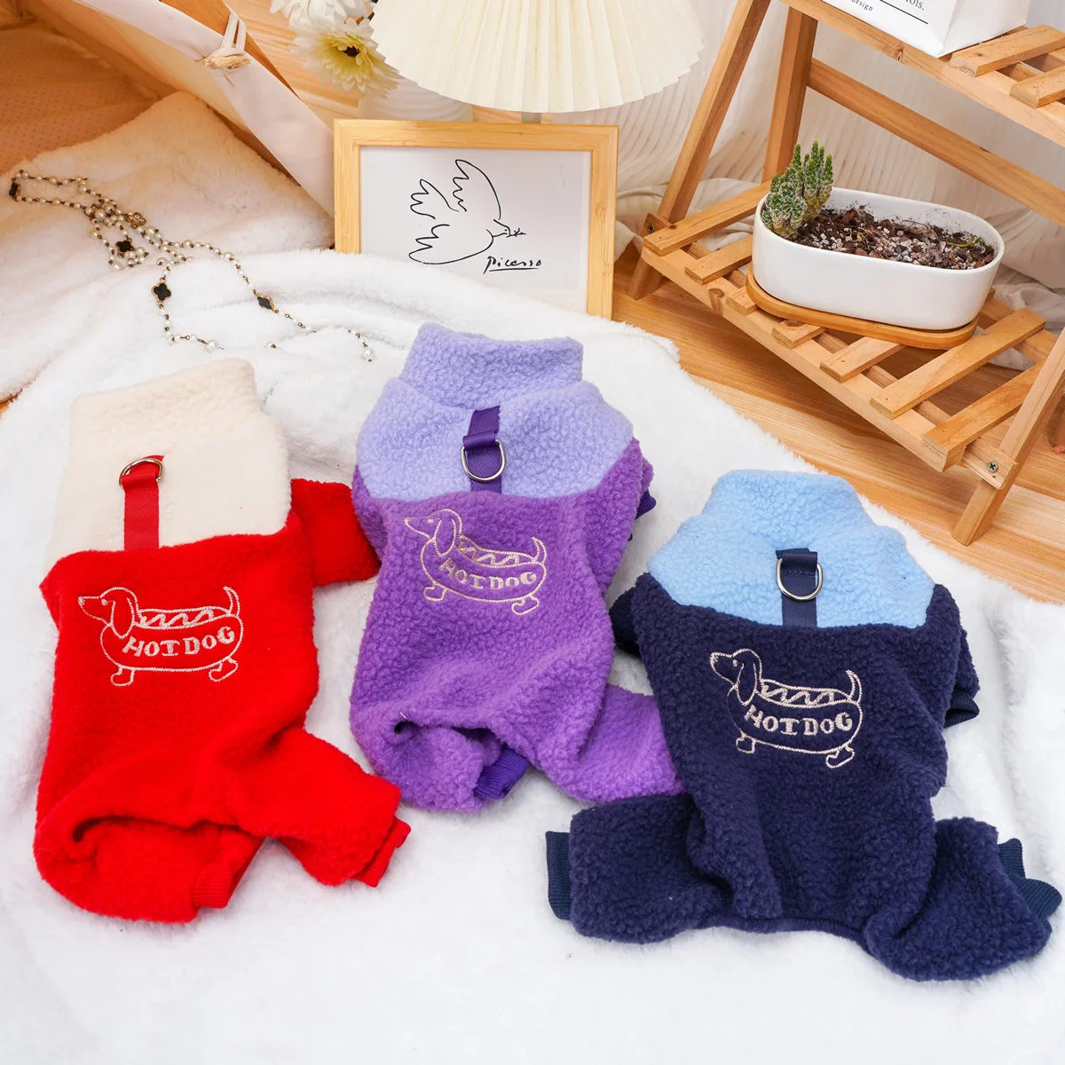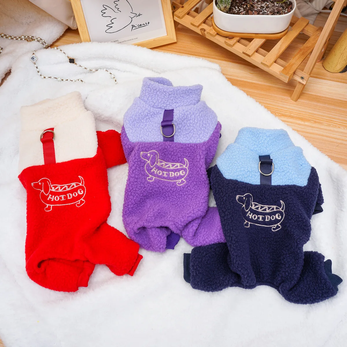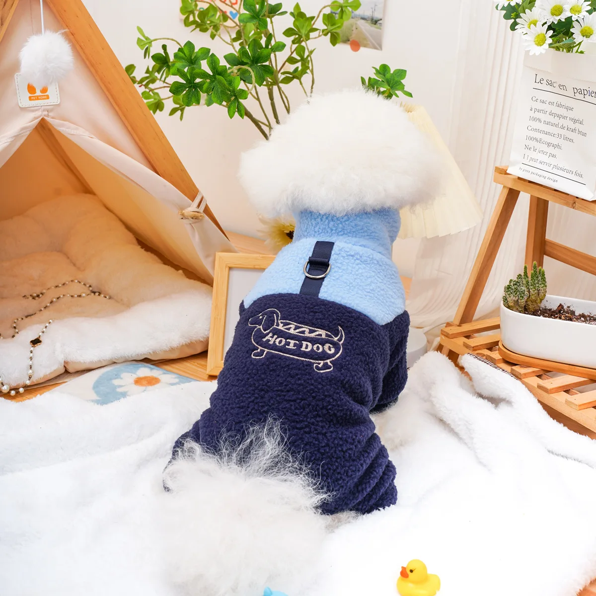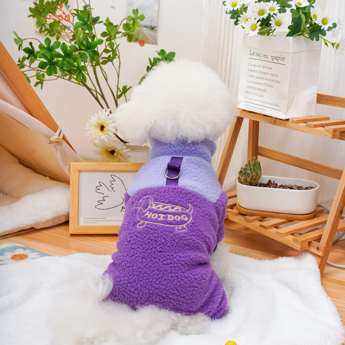 Mono de felpa para perro, ropa de otoño e invierno, pantalones bordados de cuatro patas, oso de peluche, perros pequeños, ropa cálida y esponjosa