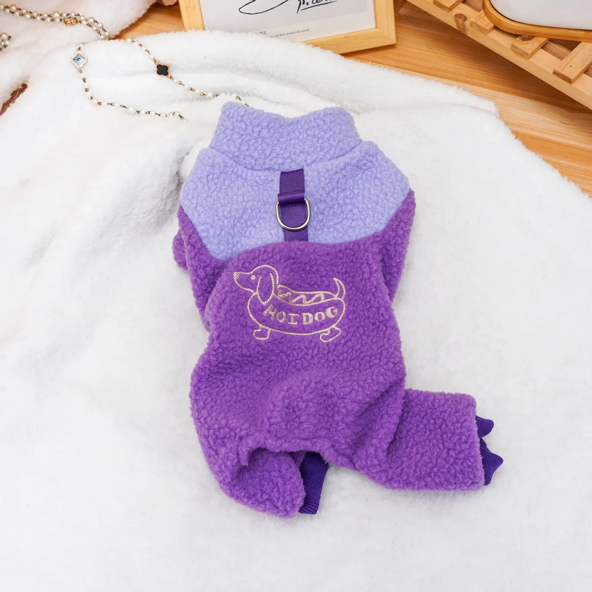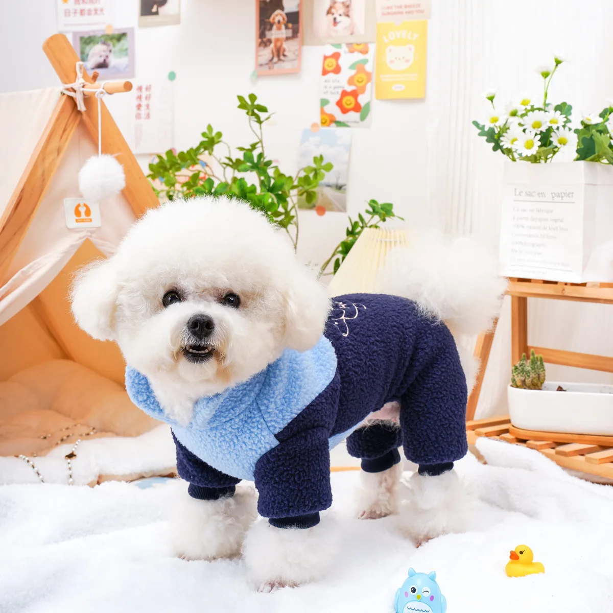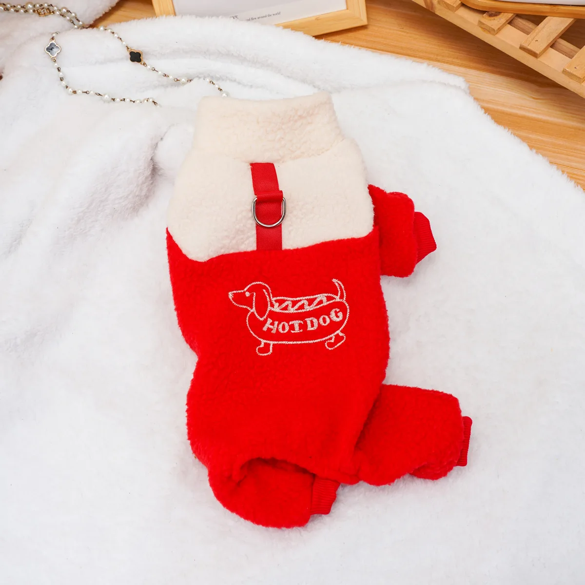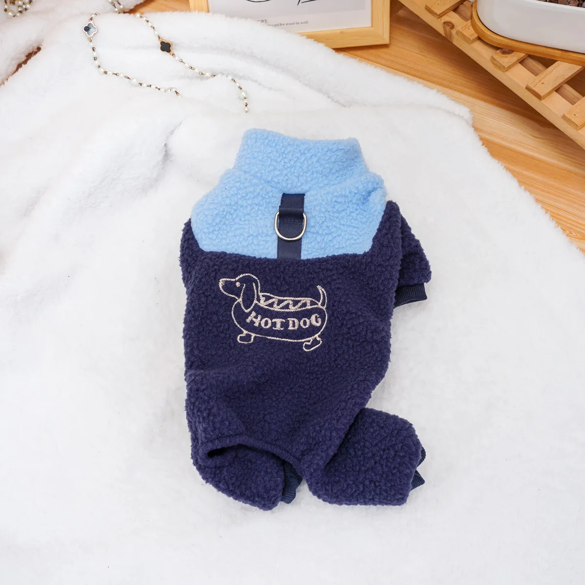 Mono de felpa para perro, ropa de otoño e invierno, pantalones bordados de cuatro patas, oso de peluche, perros pequeños, ropa cálida y esponjosa